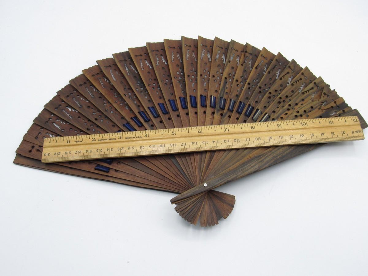 There is no damage to the fan and is in good collectible or displayable condition. Check pictures for more details and for sizing.