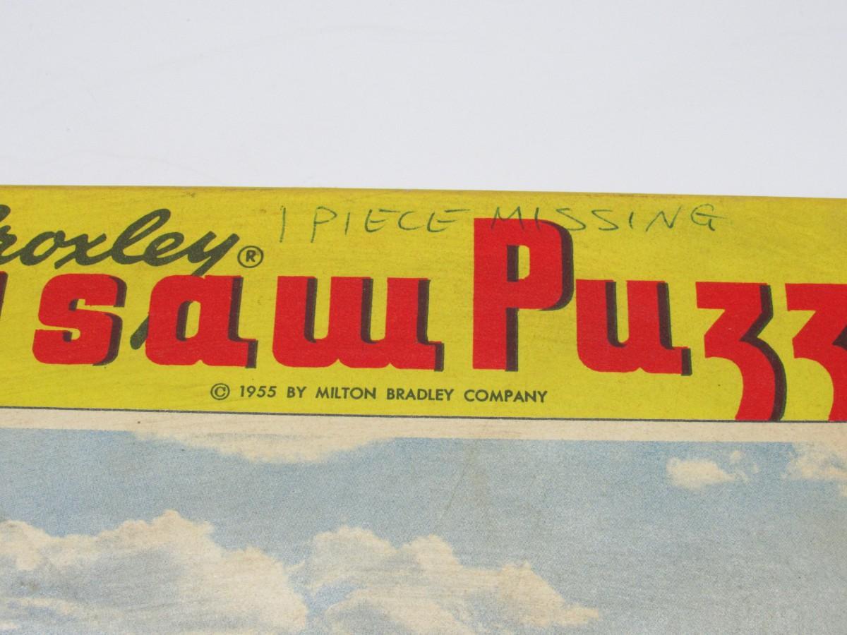 The box is a little worn and damaged, there is a message written on the top of the box that reads "1 puzzle piece missing." There is no damage to the puzzle pieces and is in overall fair collectible condition, has not been checked for completeness.