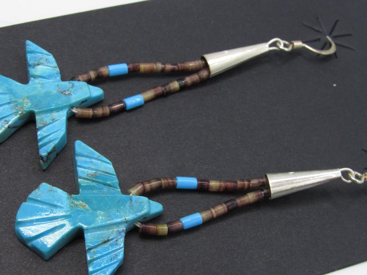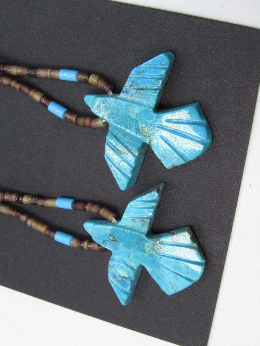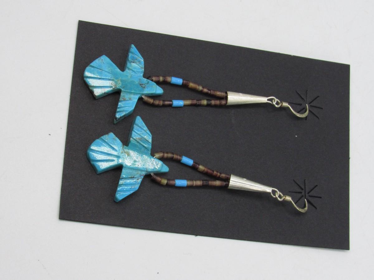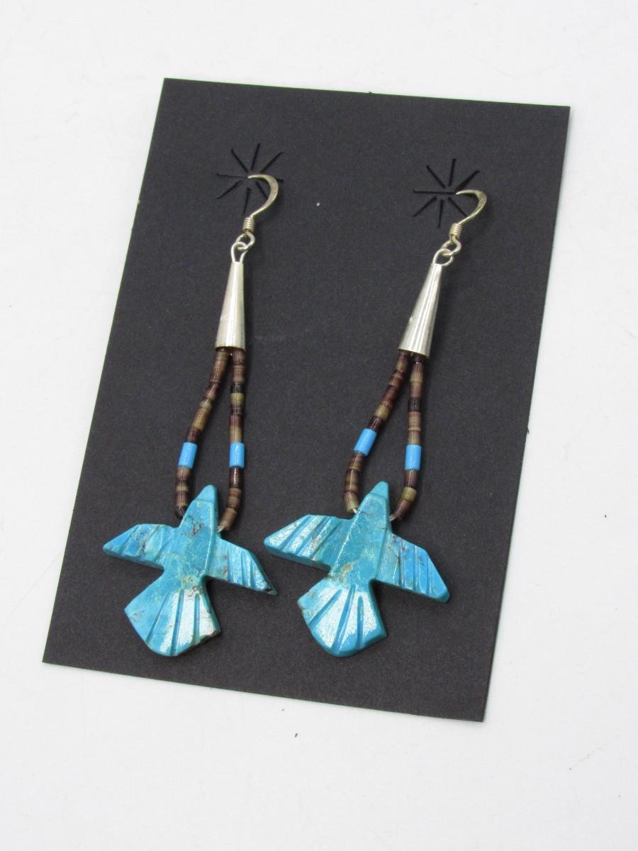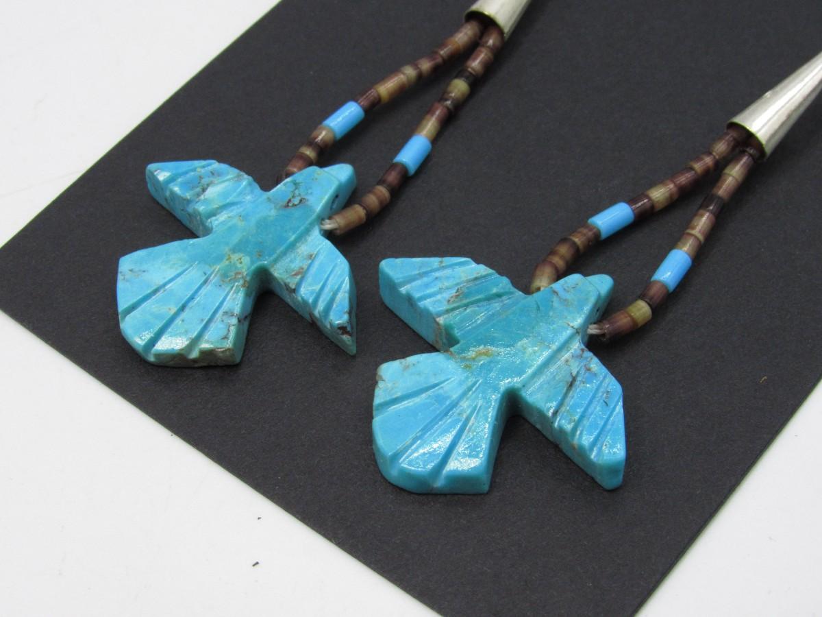 Thunderbird-Style Turquoise Blue Beaded Earrings