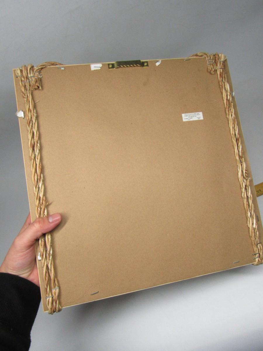 There is no damage to the frame or the art and is in overall good displayable condition. Check pictures for more details and sizing.