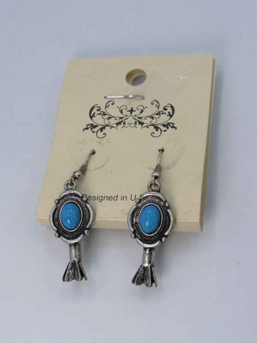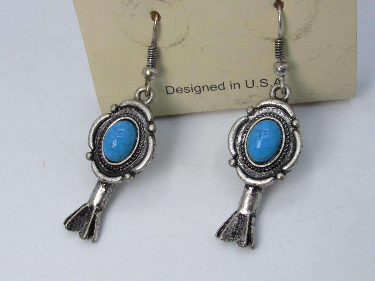 Never Worn Turquoise Silver Tone Southwestern Style Oval Dangling Earrings
