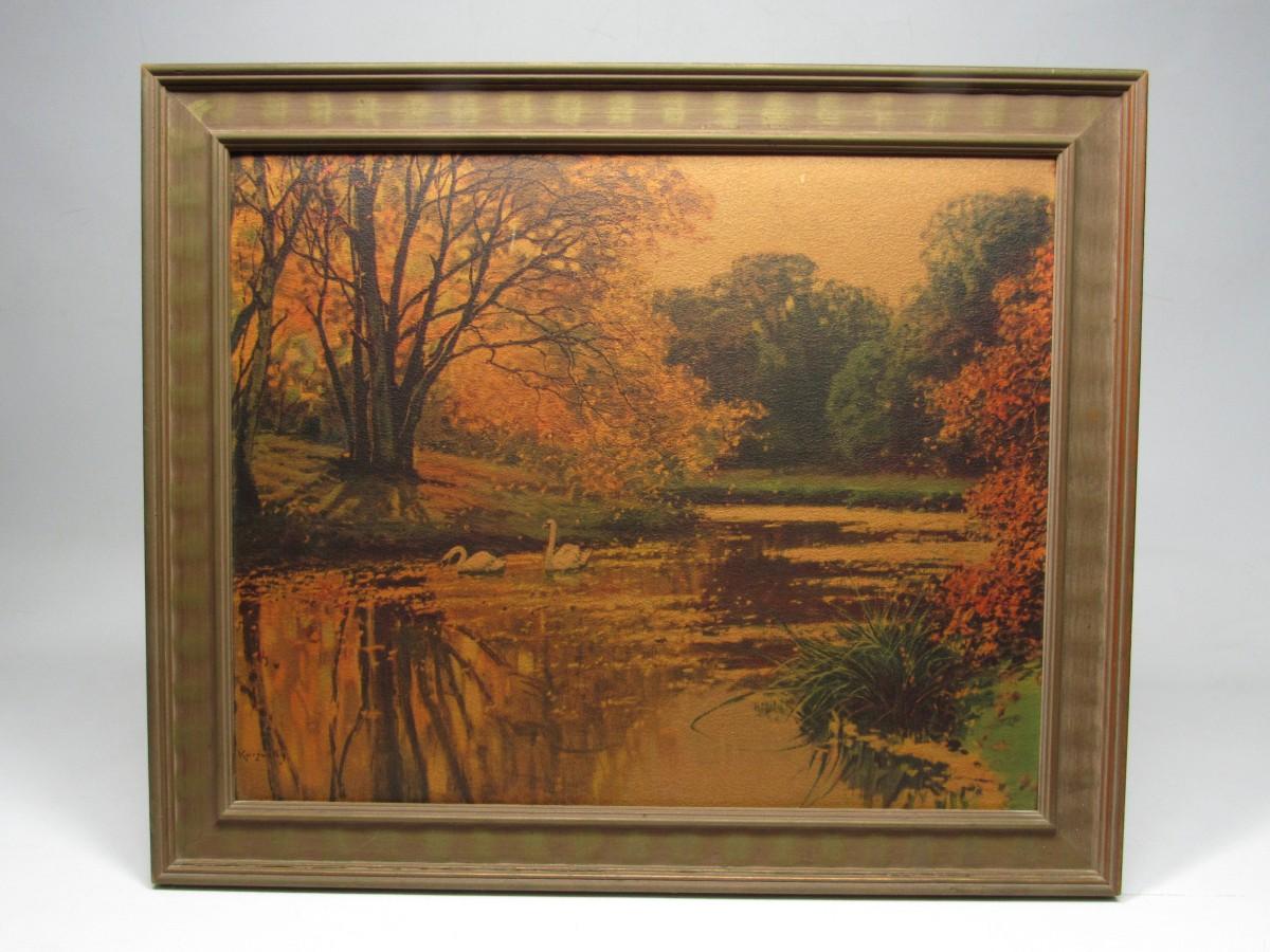 Retro Muller Kurzwelly Swan Lake MCM Wall Artwork Framed Print