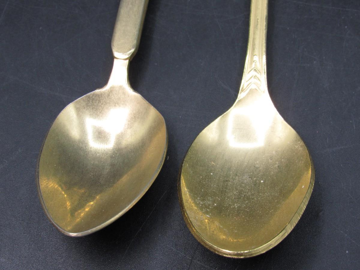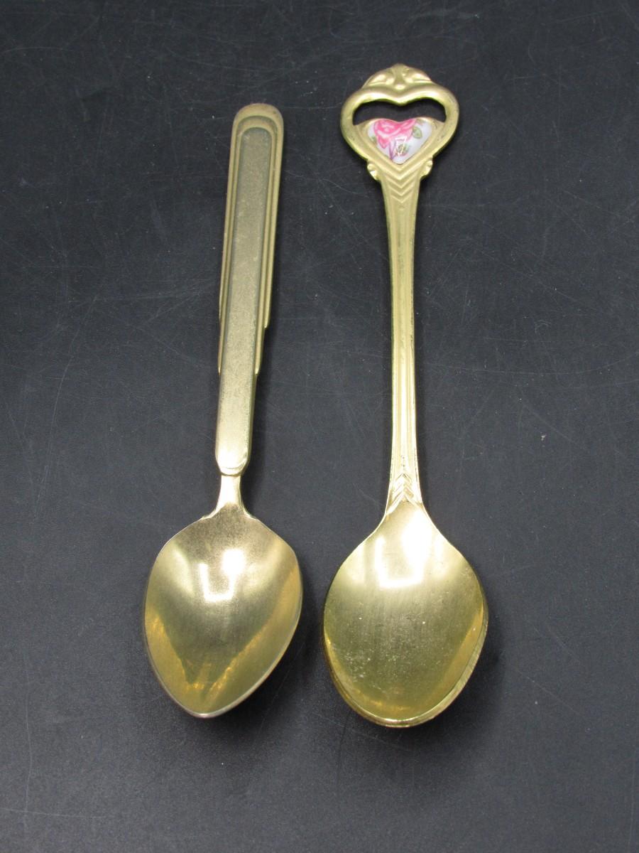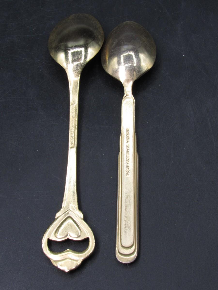 Vintage Stainless Steel Sakura Japan Gold.Tone Souvenir Spoons