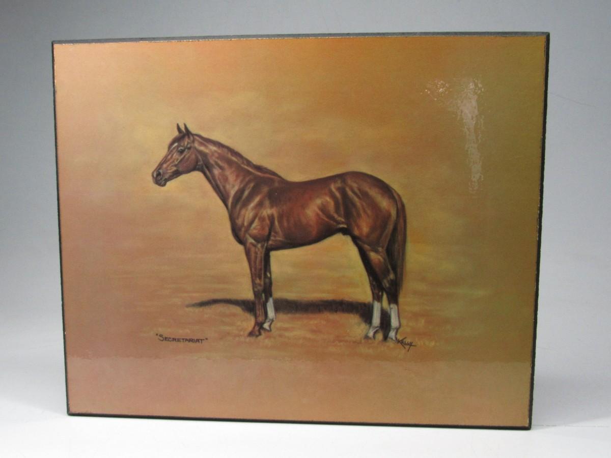 Wall Plaque with Secretariat the Racehorse print by Merry "kelly" Stevens