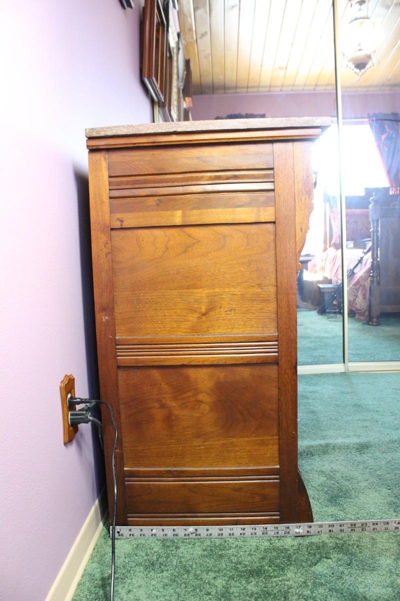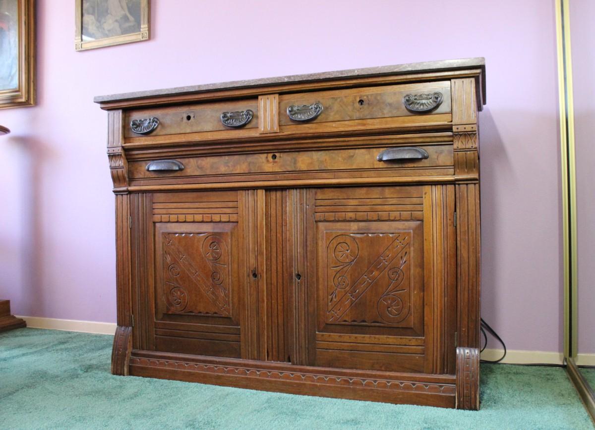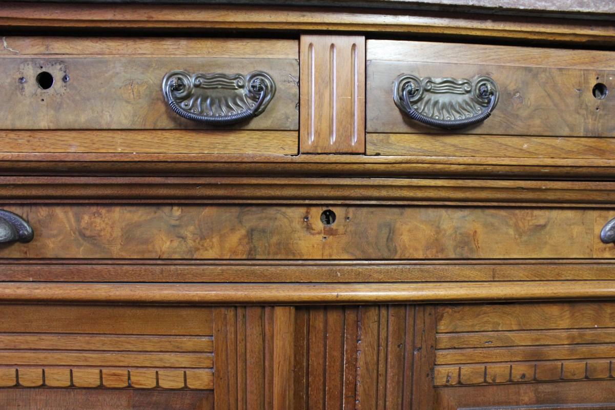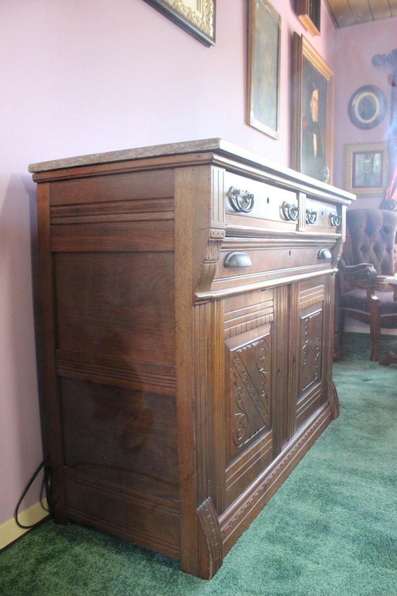 Antique Marble Top Carved Wood Sideboard Buffet Cabinet