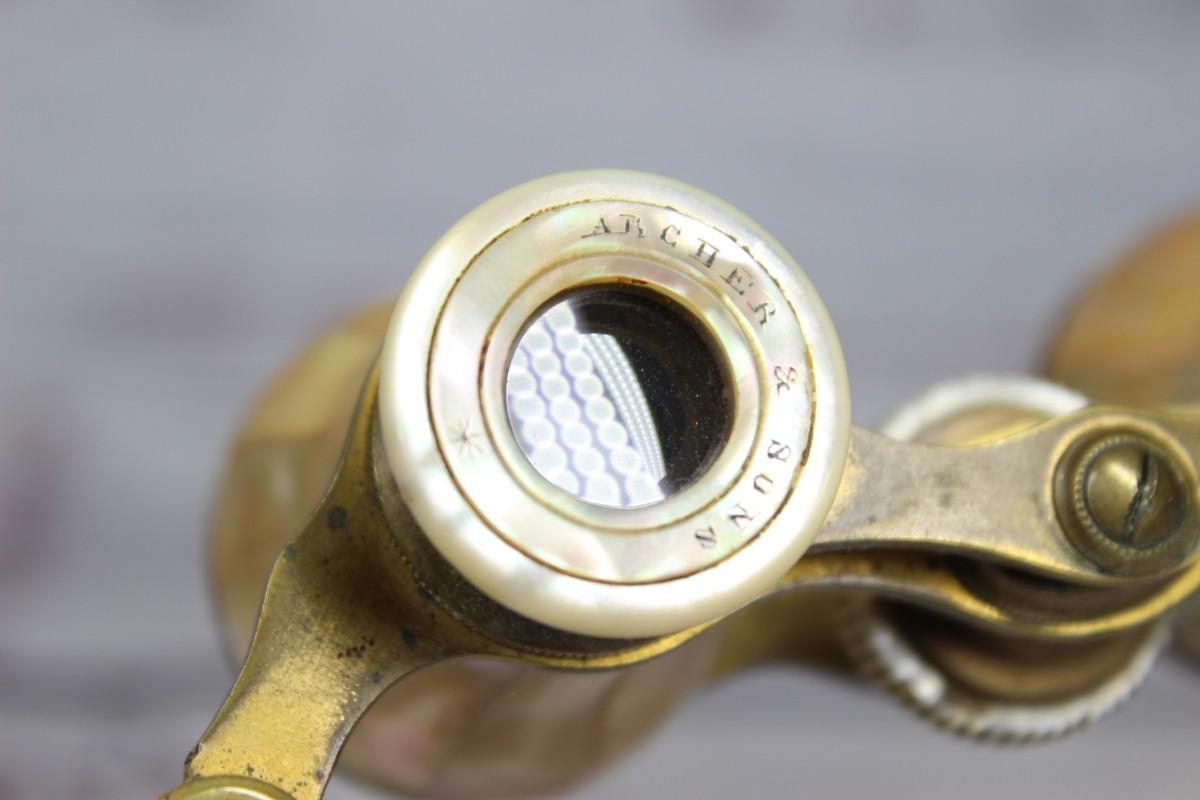 Antique 19th Century Brass Mother of Pearl Archer & Sons French Optical Opera Glasses