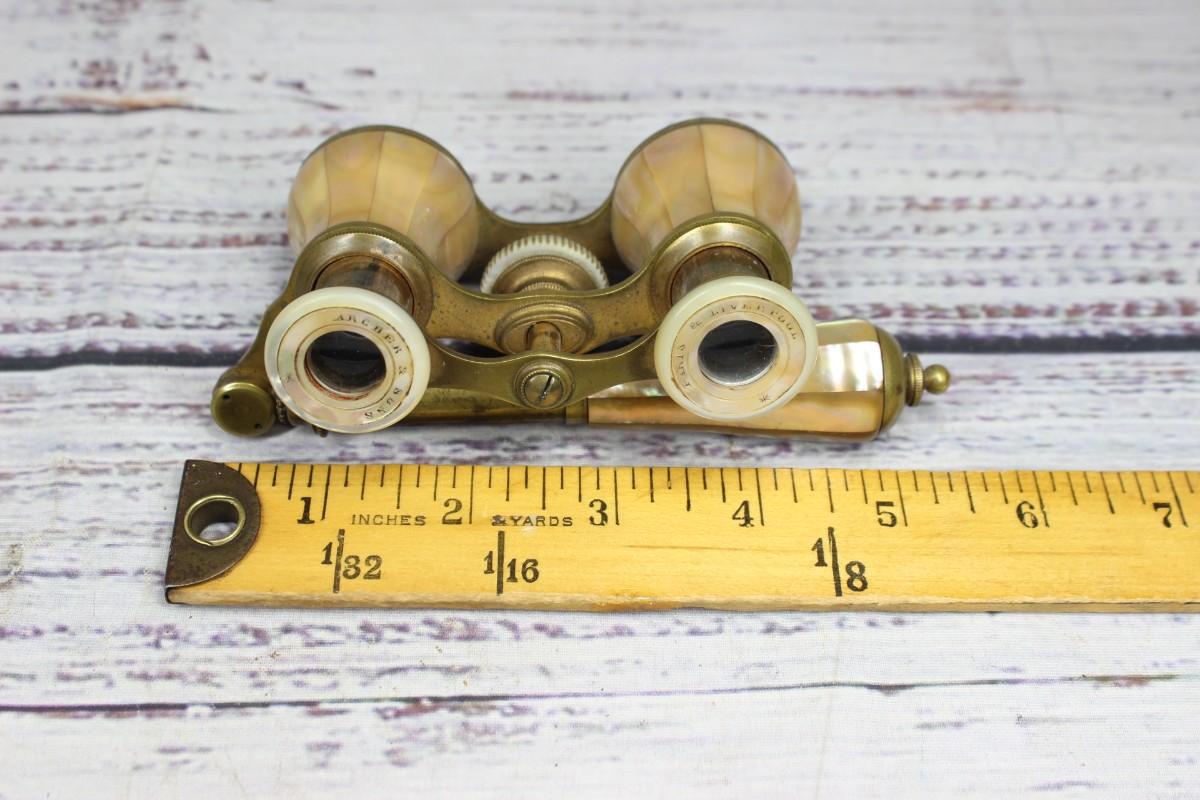 Antique 19th Century Archer & Sons French Optical Opera Glasses , there is.no cracks or chips to the piece and is in good vintage condition. The glasses are functional and can be adjusted, check pictures for more details and for sizing.
