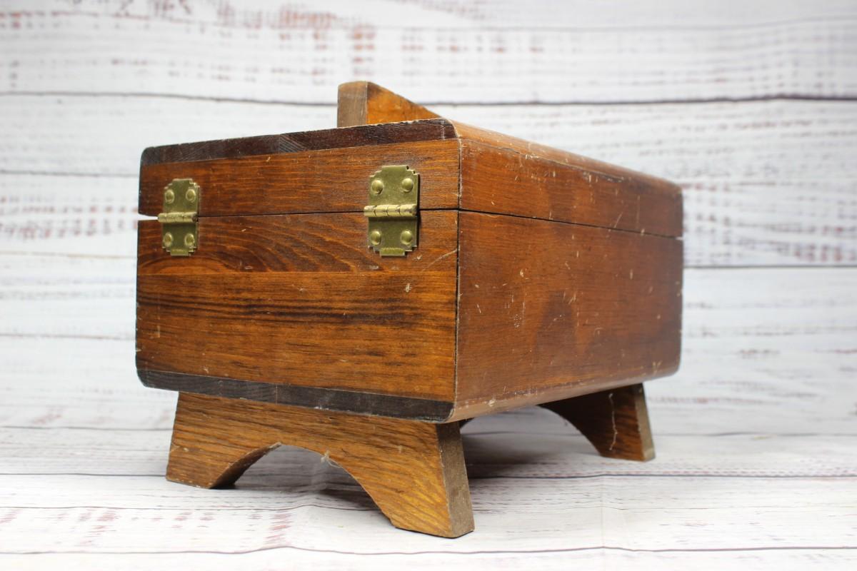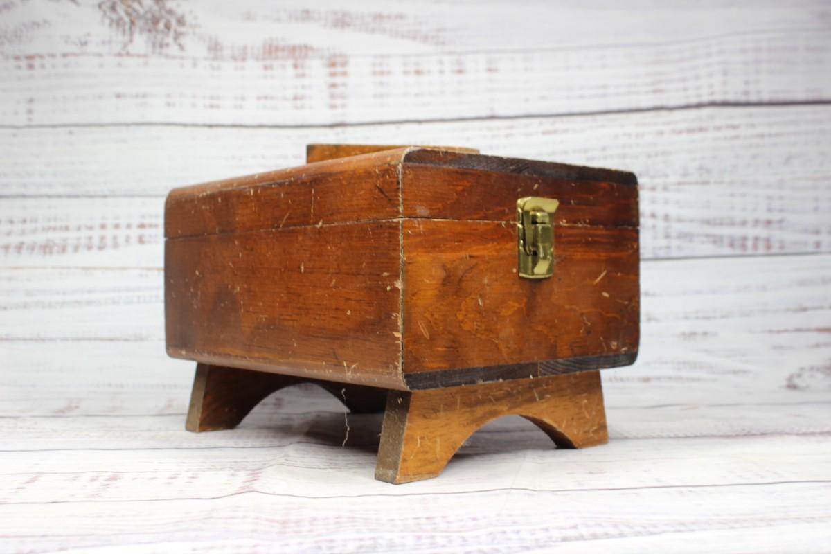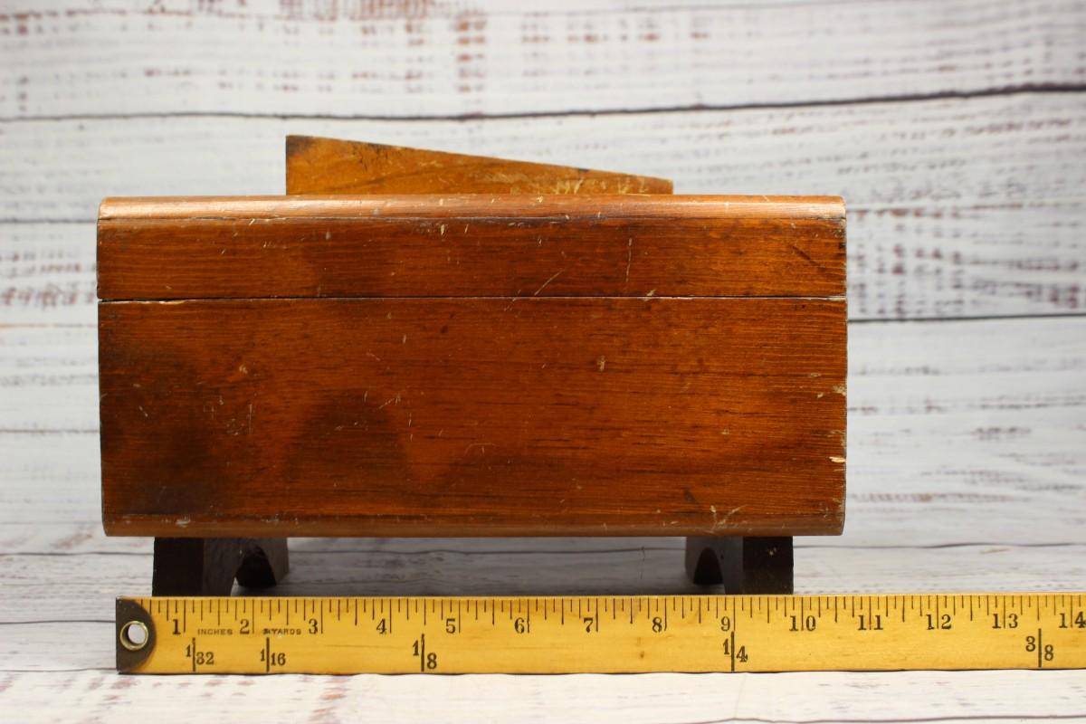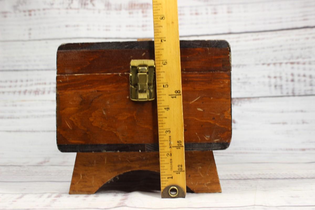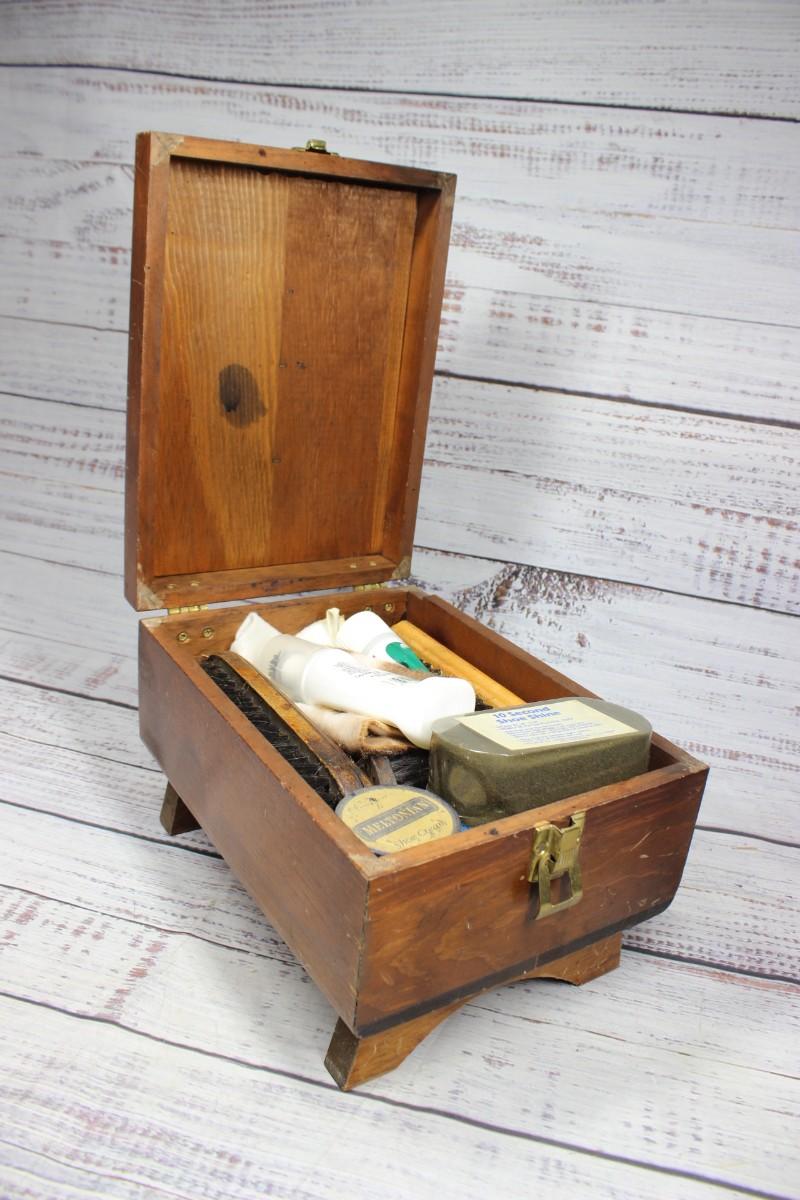 Vintage Wooden Shoe Shine Kit with Brushes, Polishes, Cloths & More, there's no significant cracks or chips to the wooden case and is in good useable condition. Check pictures for more details and for sizing.