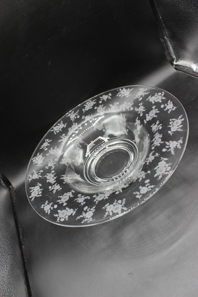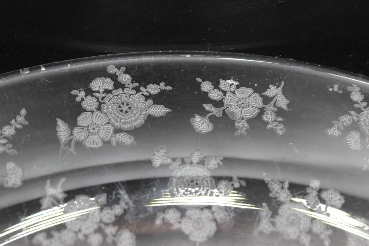 Vintage Clear Glass Etched Floral Plate Platter Bowl Centerpiece