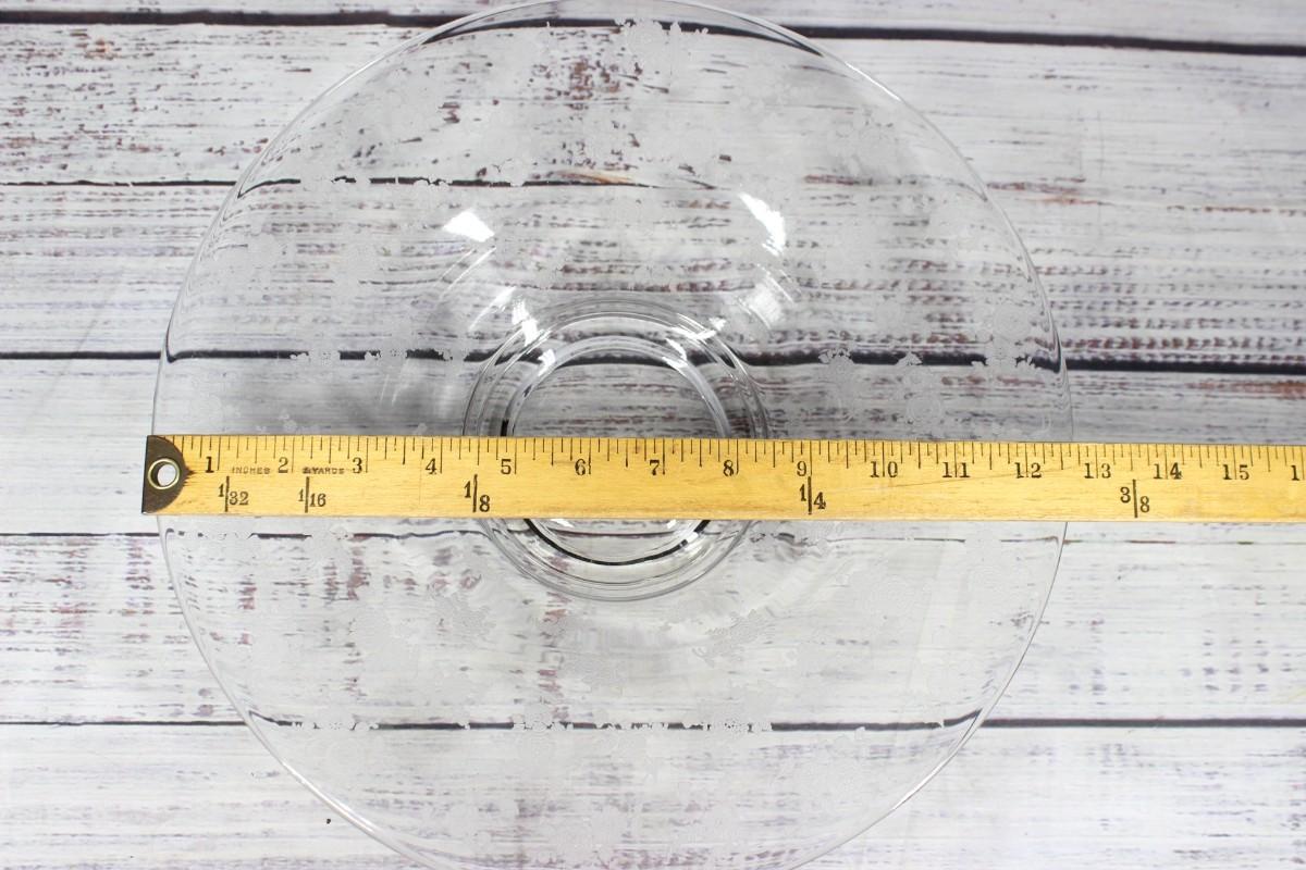Vintage Clear Glass Etched Floral Plate Platter Bowl, there are no cracks or chips to the glass and is in good vintage condition. Check pictures for more details and for sizing.