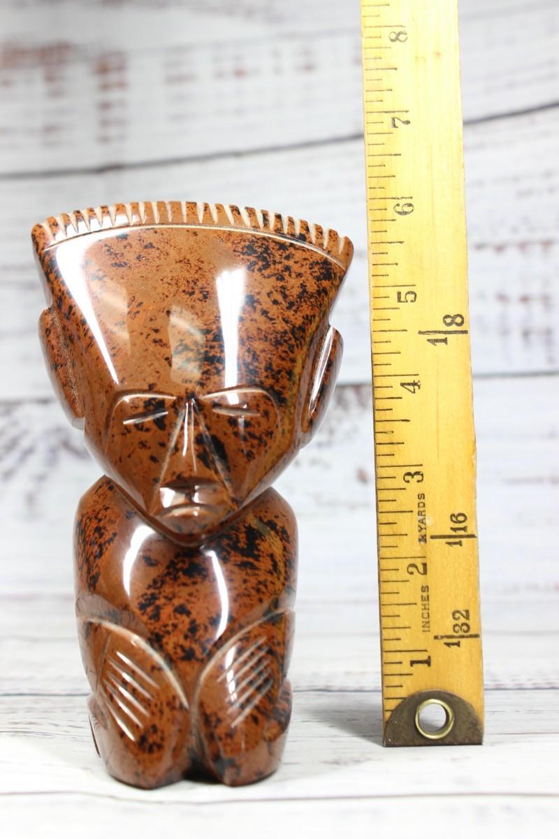 Vintage Mesoamerican Souvenir Carved Mahogany Smooth Stone Figurine, there are no cracks or chips to the piece and is in good condition. Check pictures for more details and for sizing.