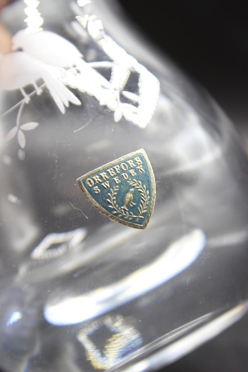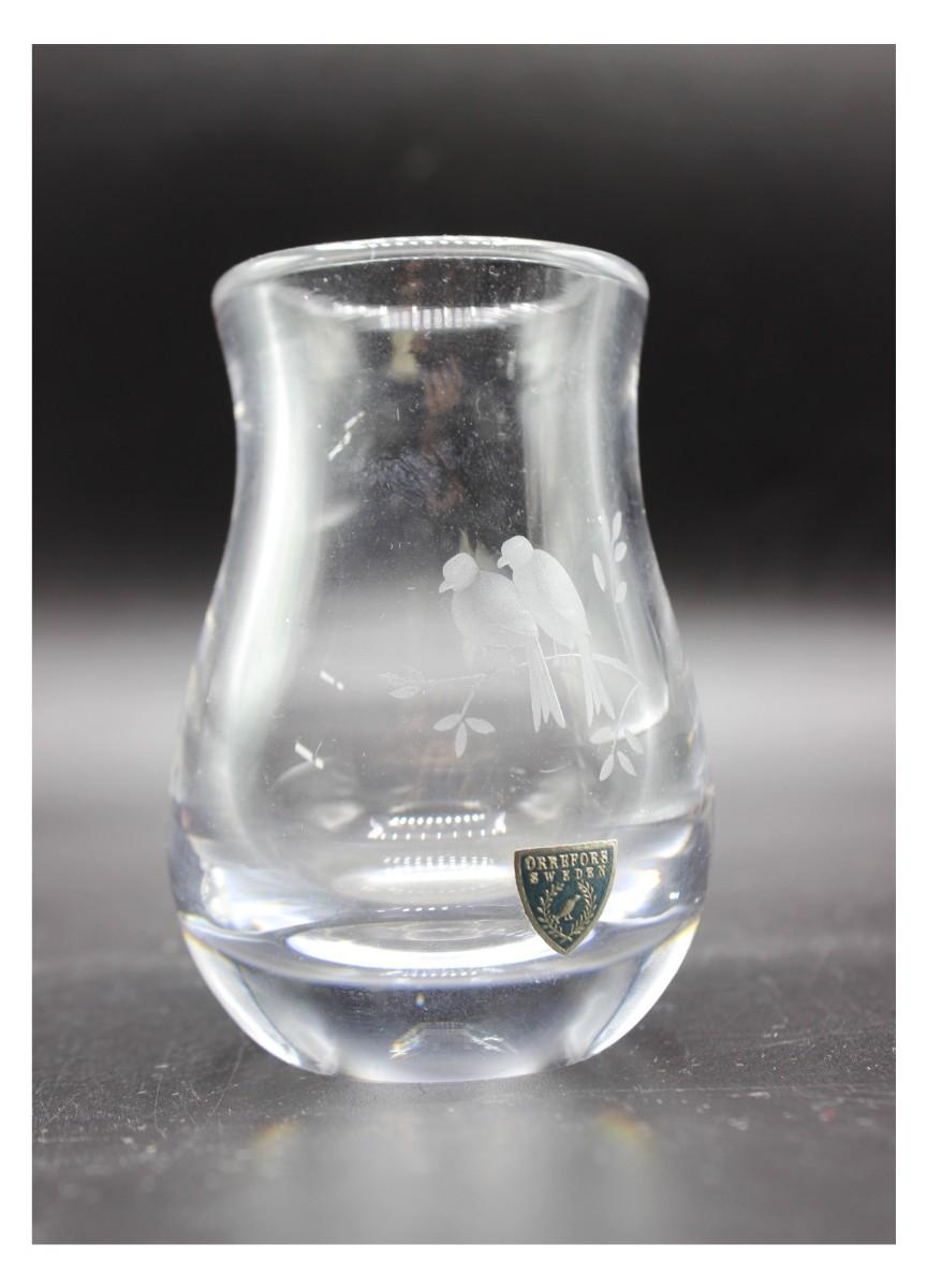 Vintage Orrefors Sweden Bird Etched Heavy Bottom Bud Vase