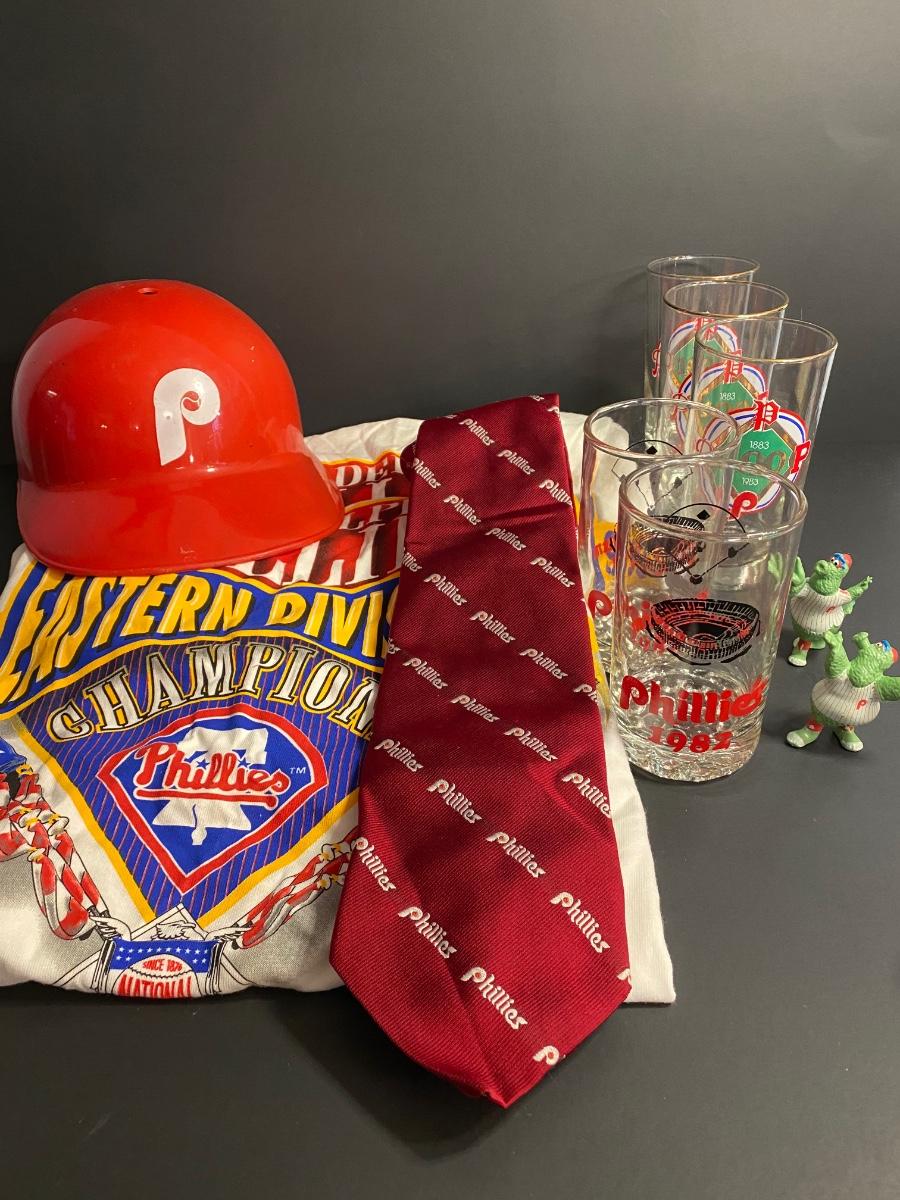 Lot 006: Philadelphia Phillies Bar Glasses, Tie, T-shirts and More
