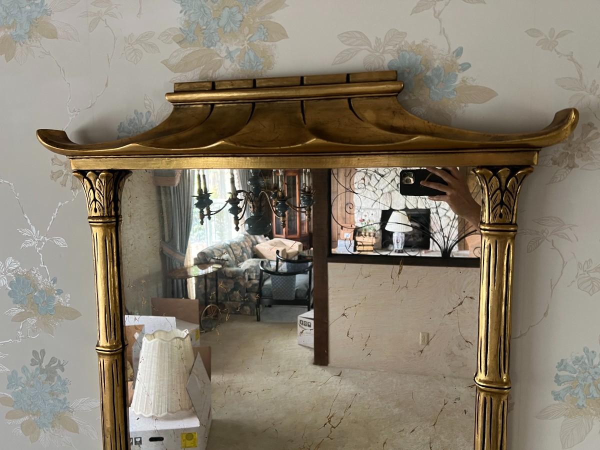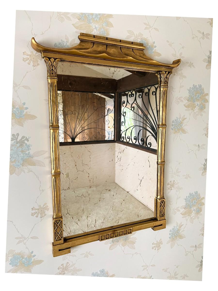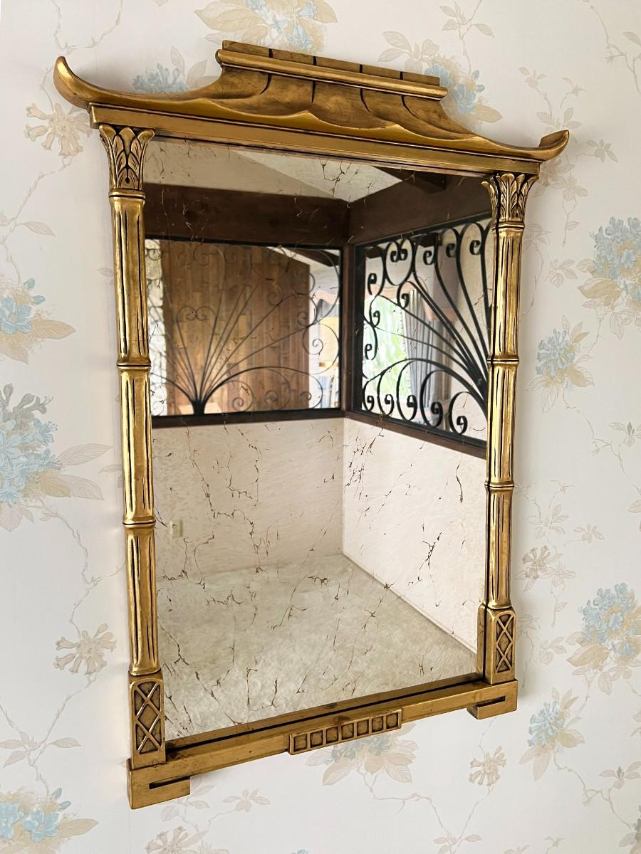 Mid Century Modern Gold Gilt Pagoda Asian Framed Wall Mirror