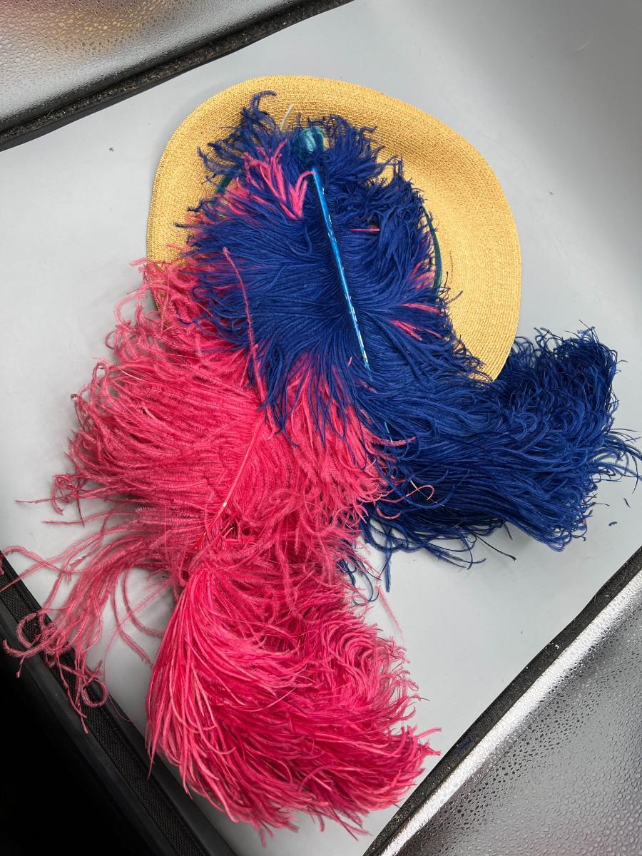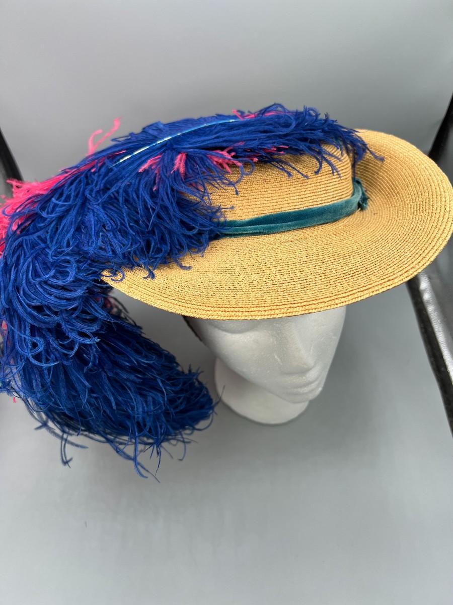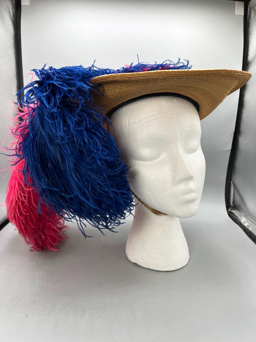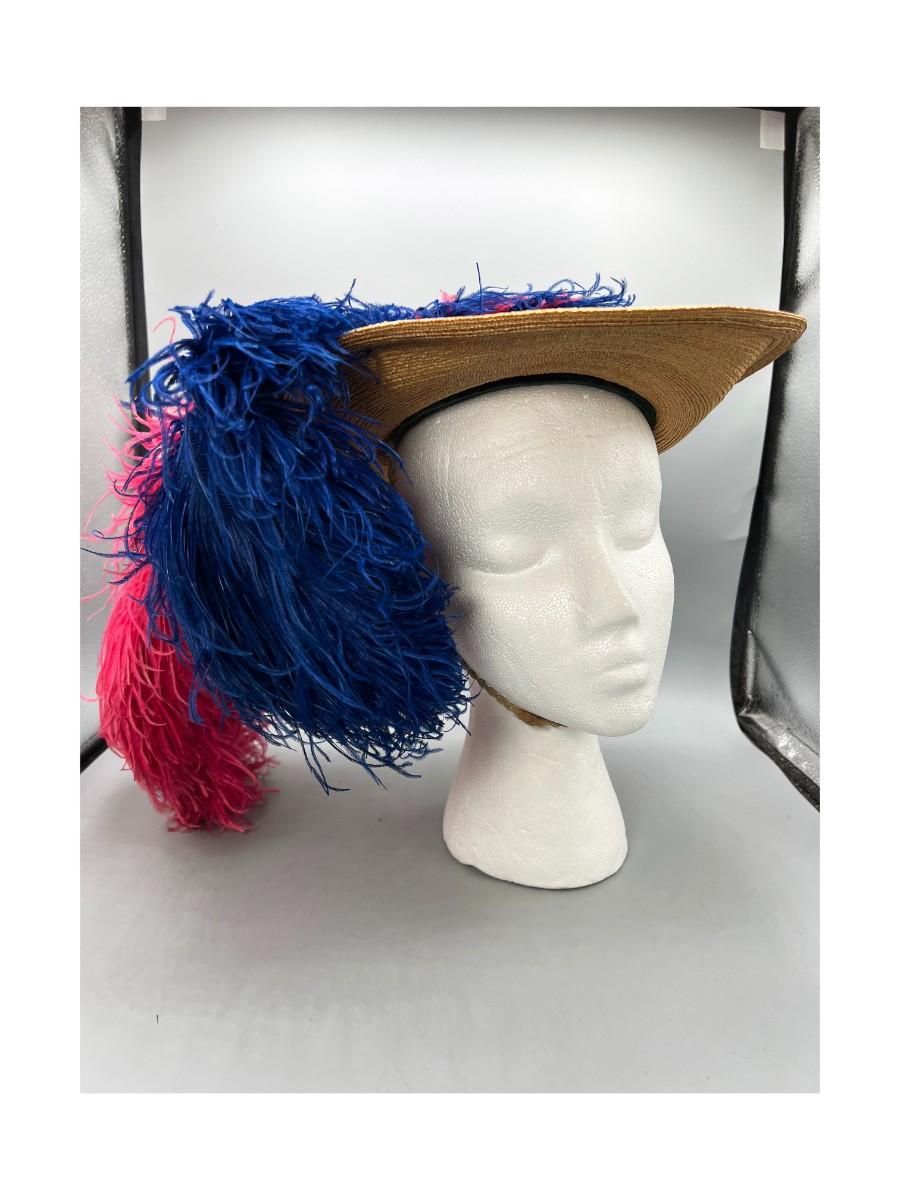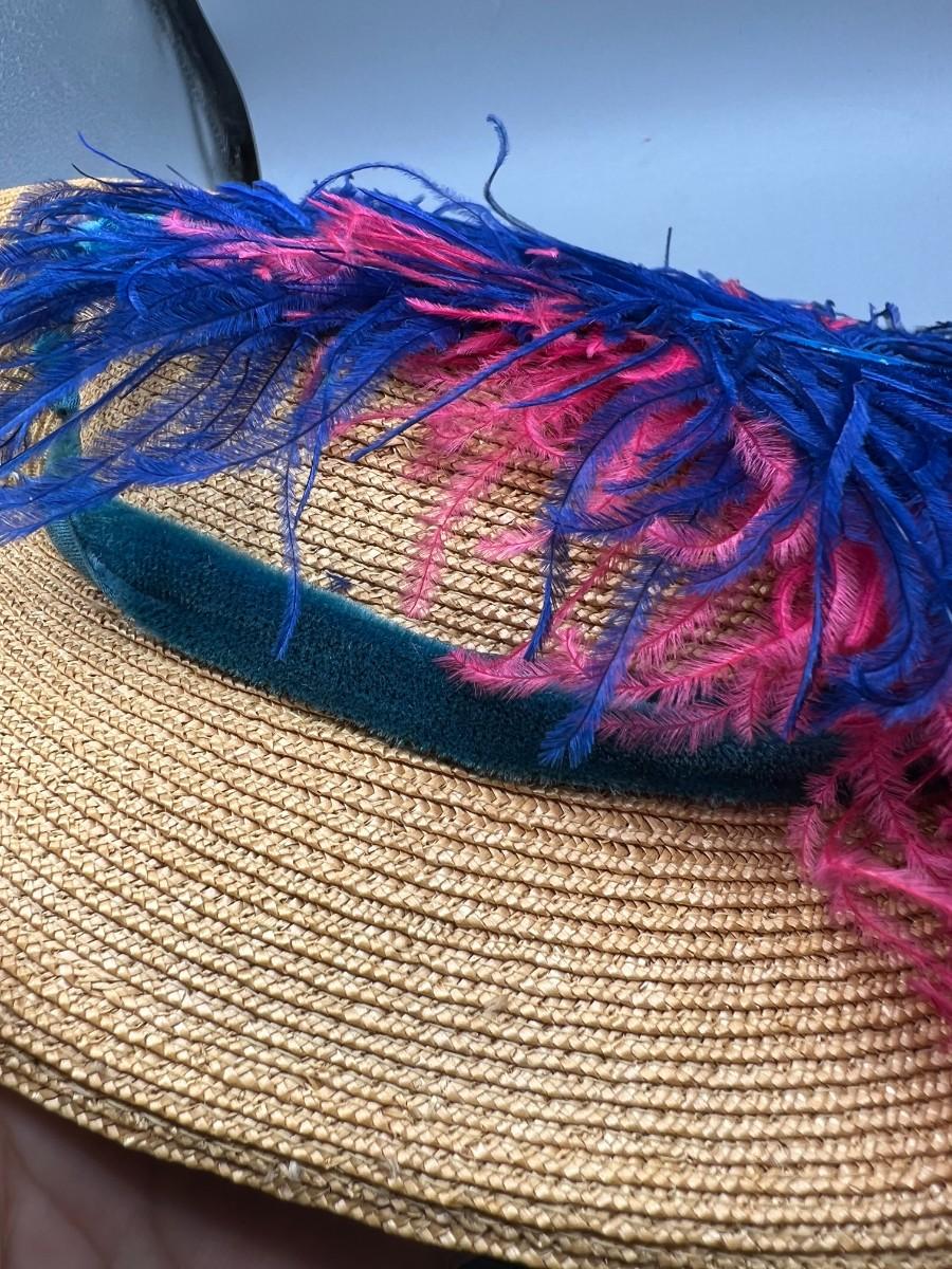 Vintage Chanda Multicolored Feather Womens Straw Hat