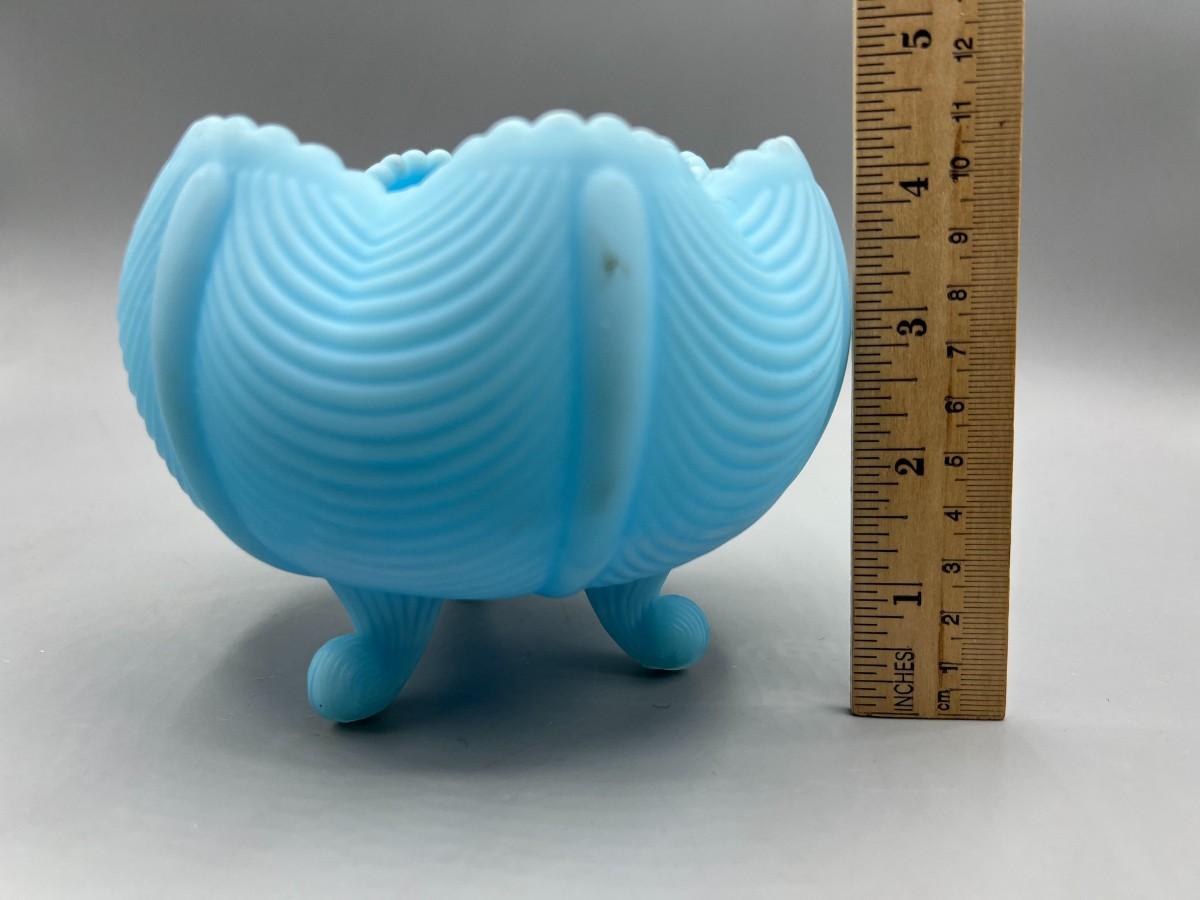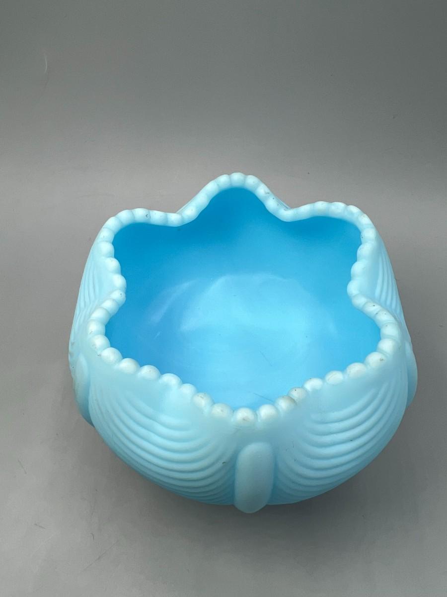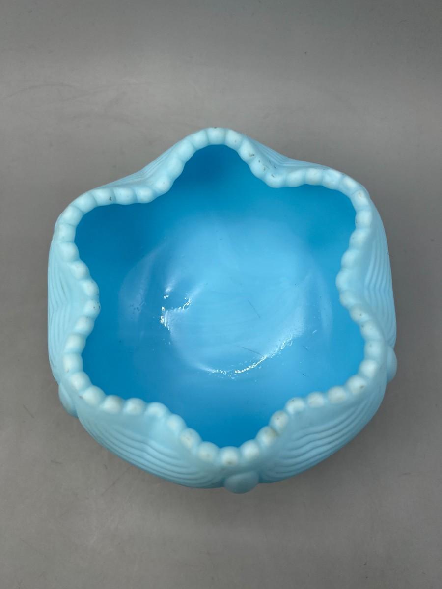 Vintage Fenton Blue Satin Finish Drape Pattern Art Glass Rose Trinket Bowl
