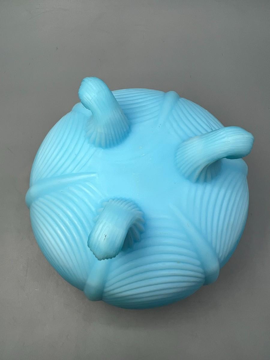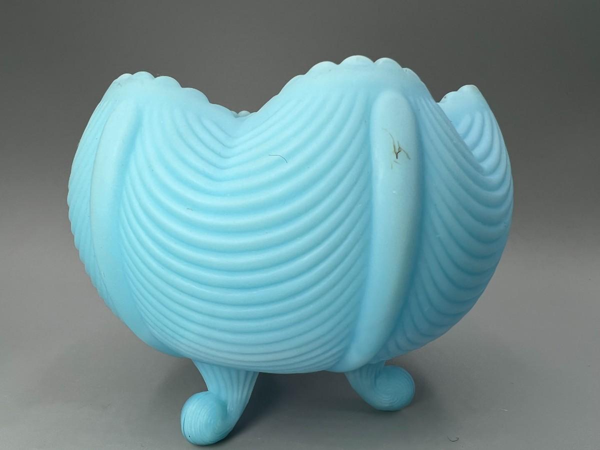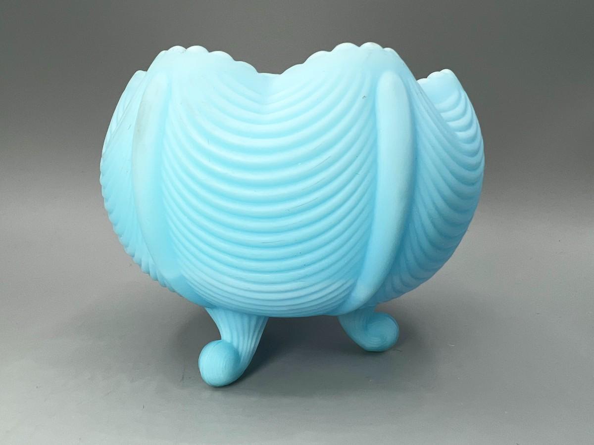 Vintage Fenton Blue Satin Finish Drape Pattern Art Glass Rose Trinket Bowl