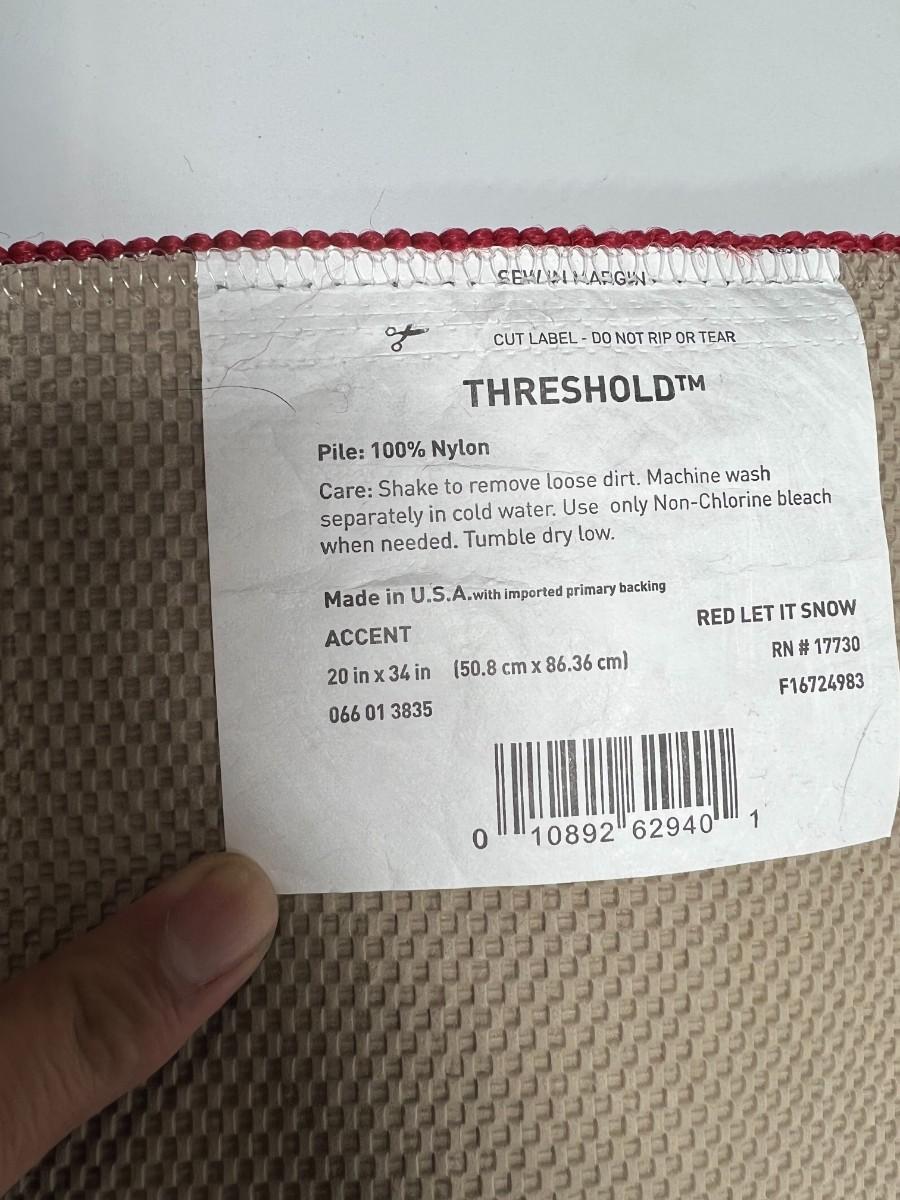 The rug is like new and does not have any tears or rips. The rug is 24" x 30."