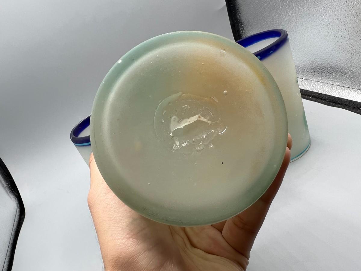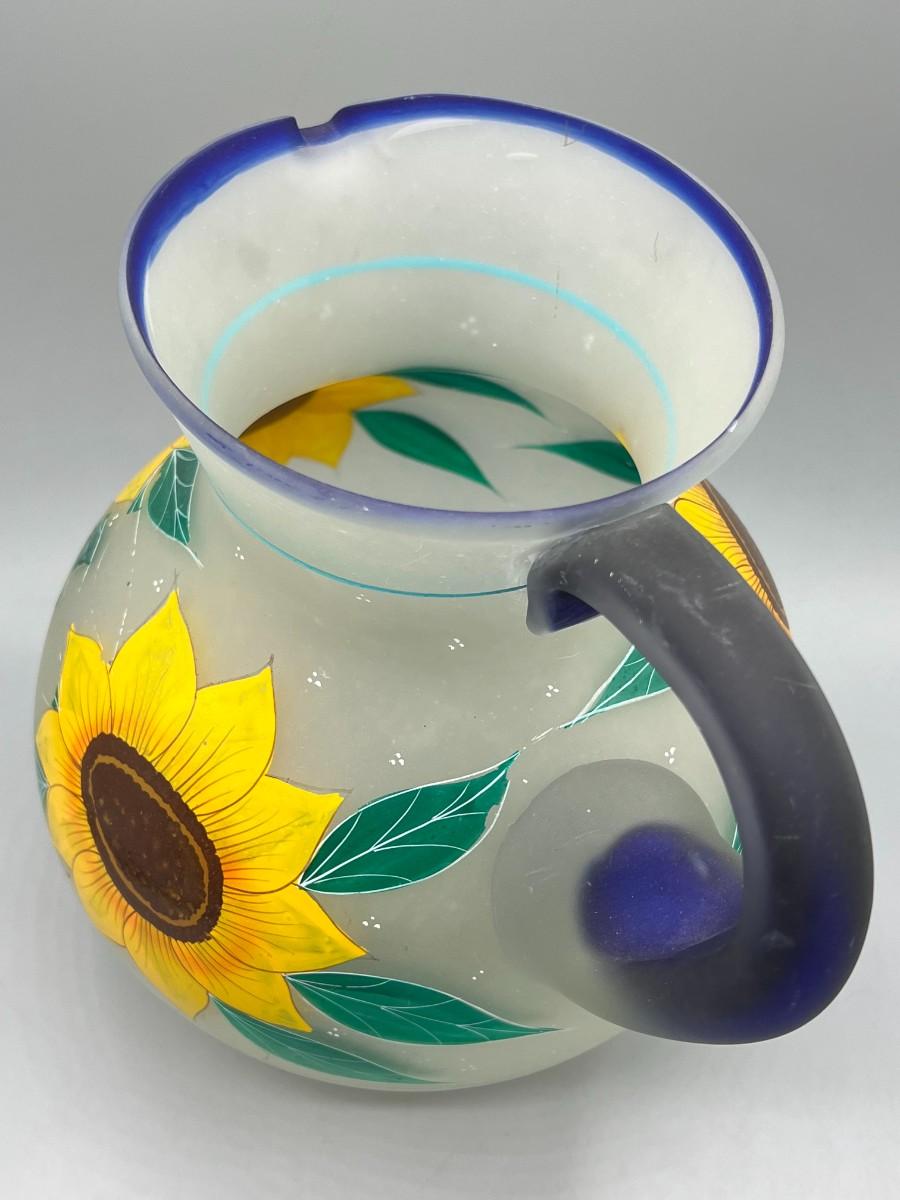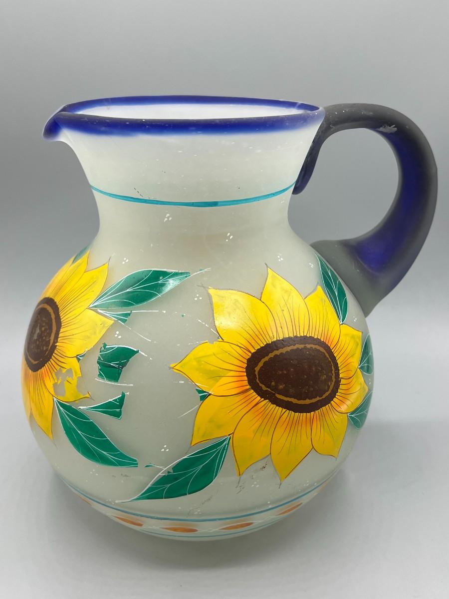 Frosted Glass Painted Sunflower Pitcher with 4 Matching Drink Glasses