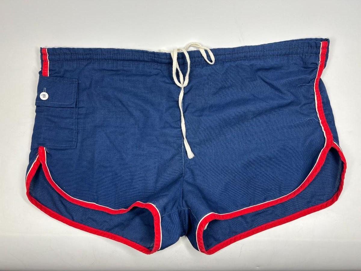 There is some light wear to the swimming trunks, but there is no significant damage ad is in overall good wearable condition. Check pictures for more details.