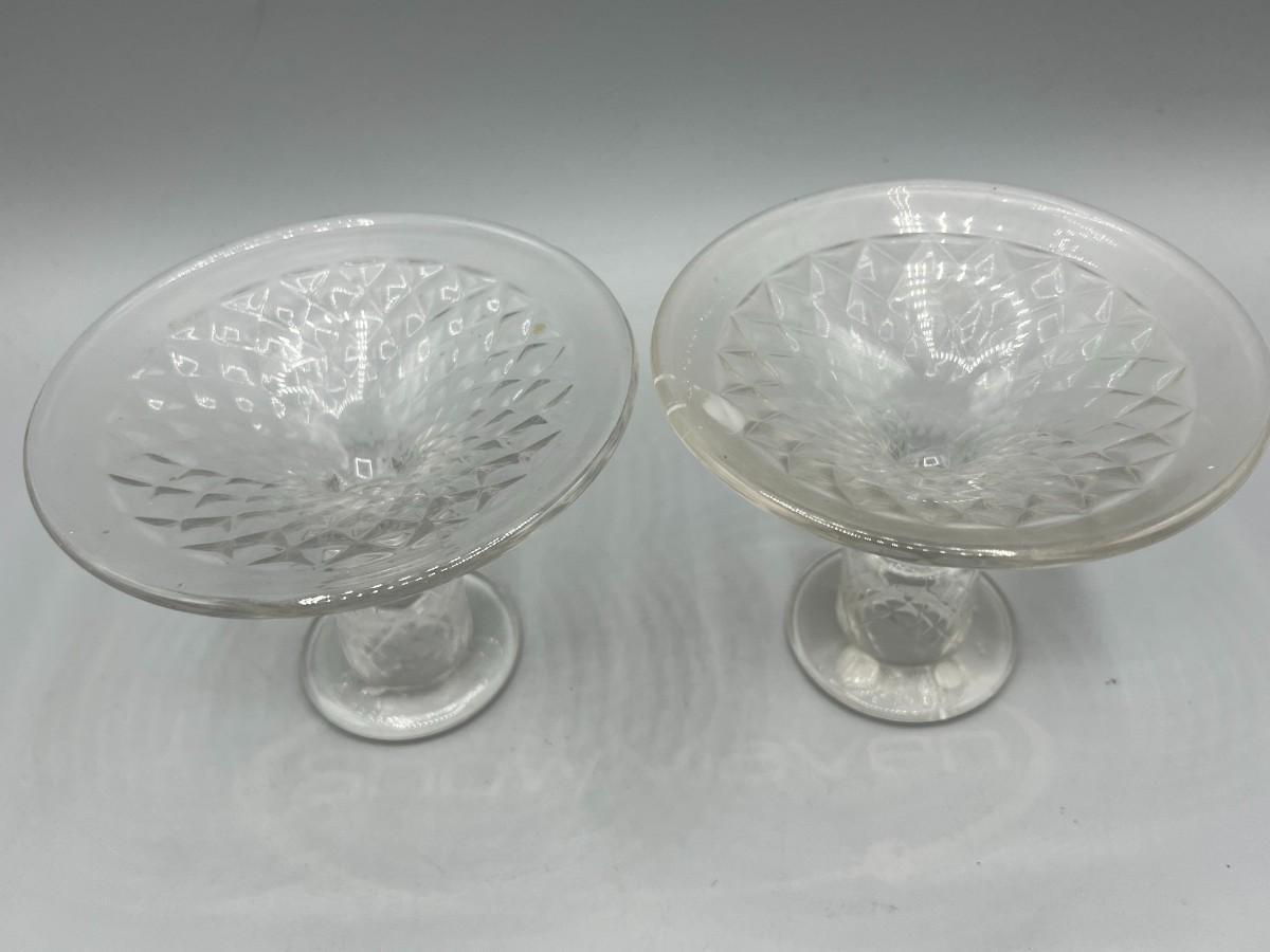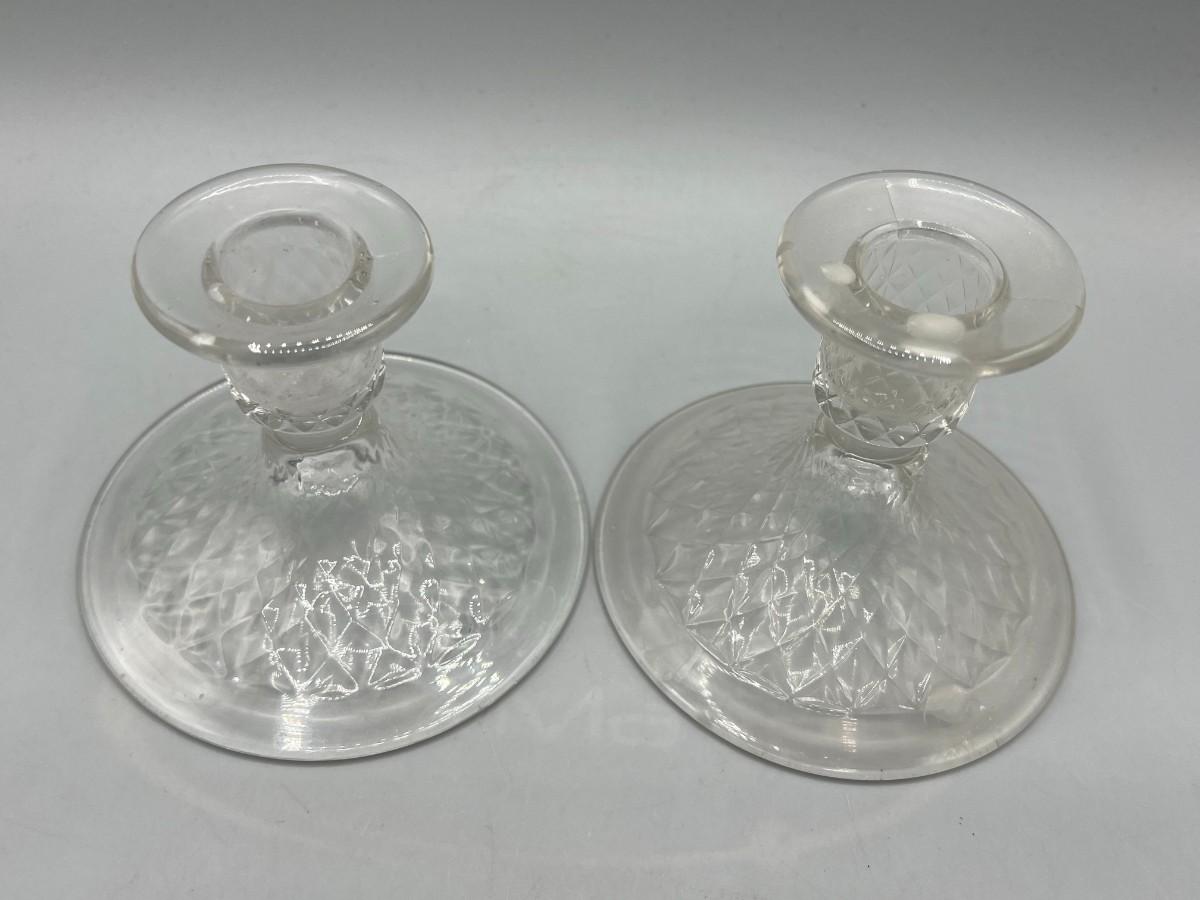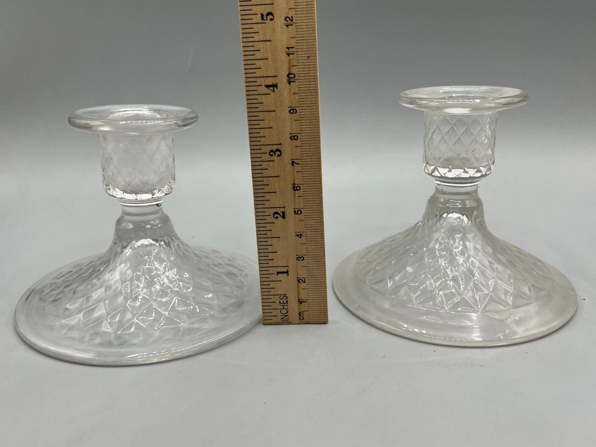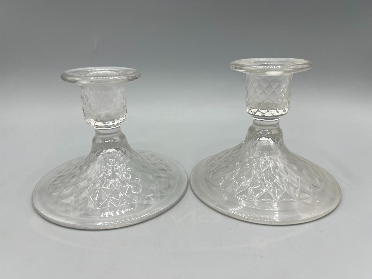 Pair of Vintage Crystal Glass Diamond Pattern Candlestick Holders
