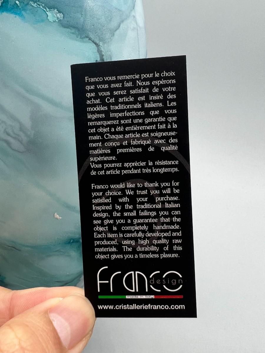 Retro Franco Design Glassware Italian Made Blue Mid Century Style Vase