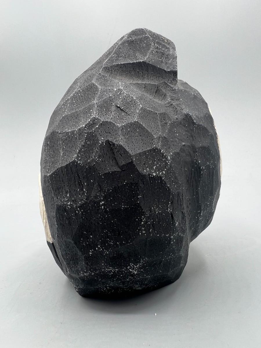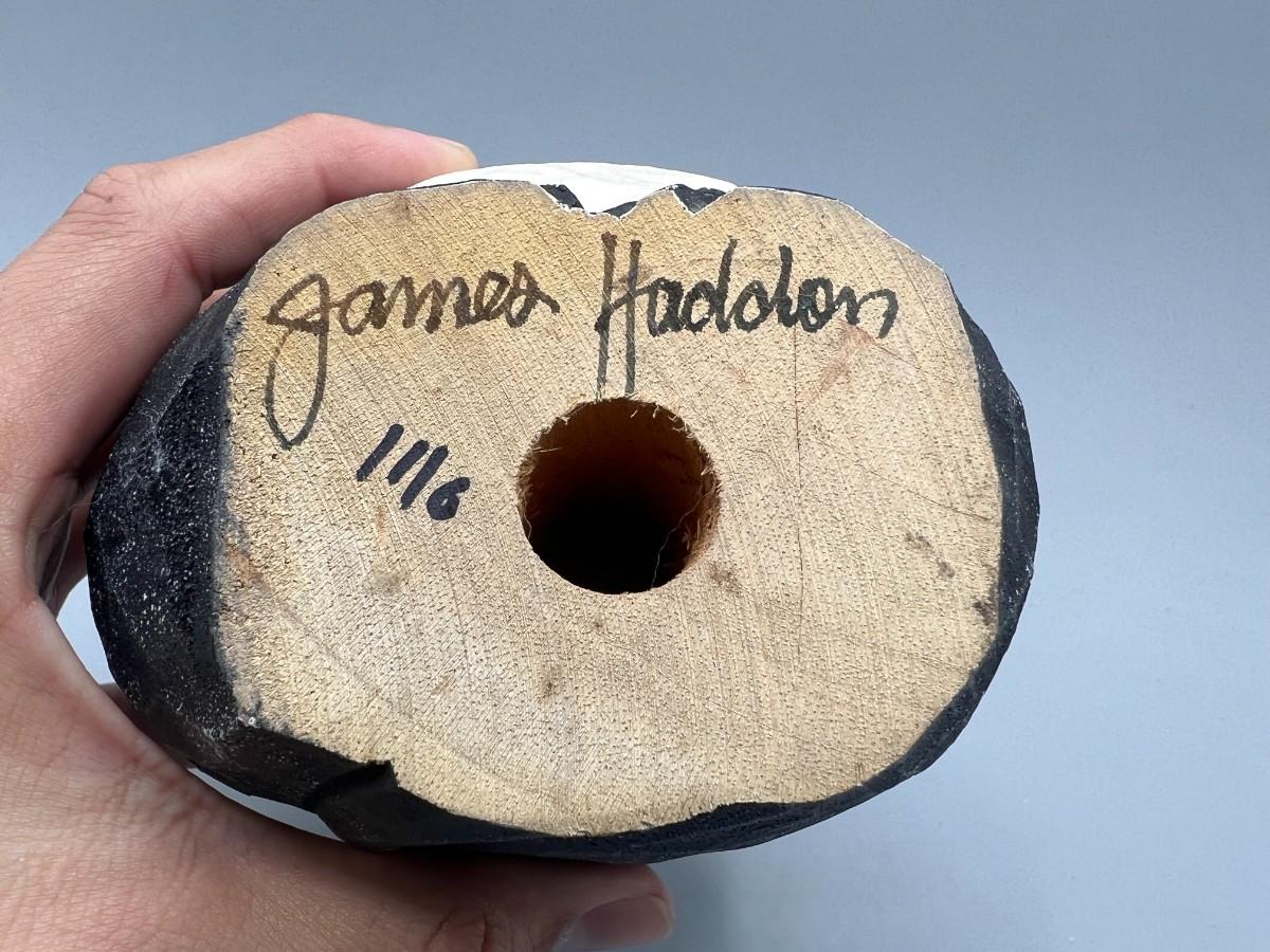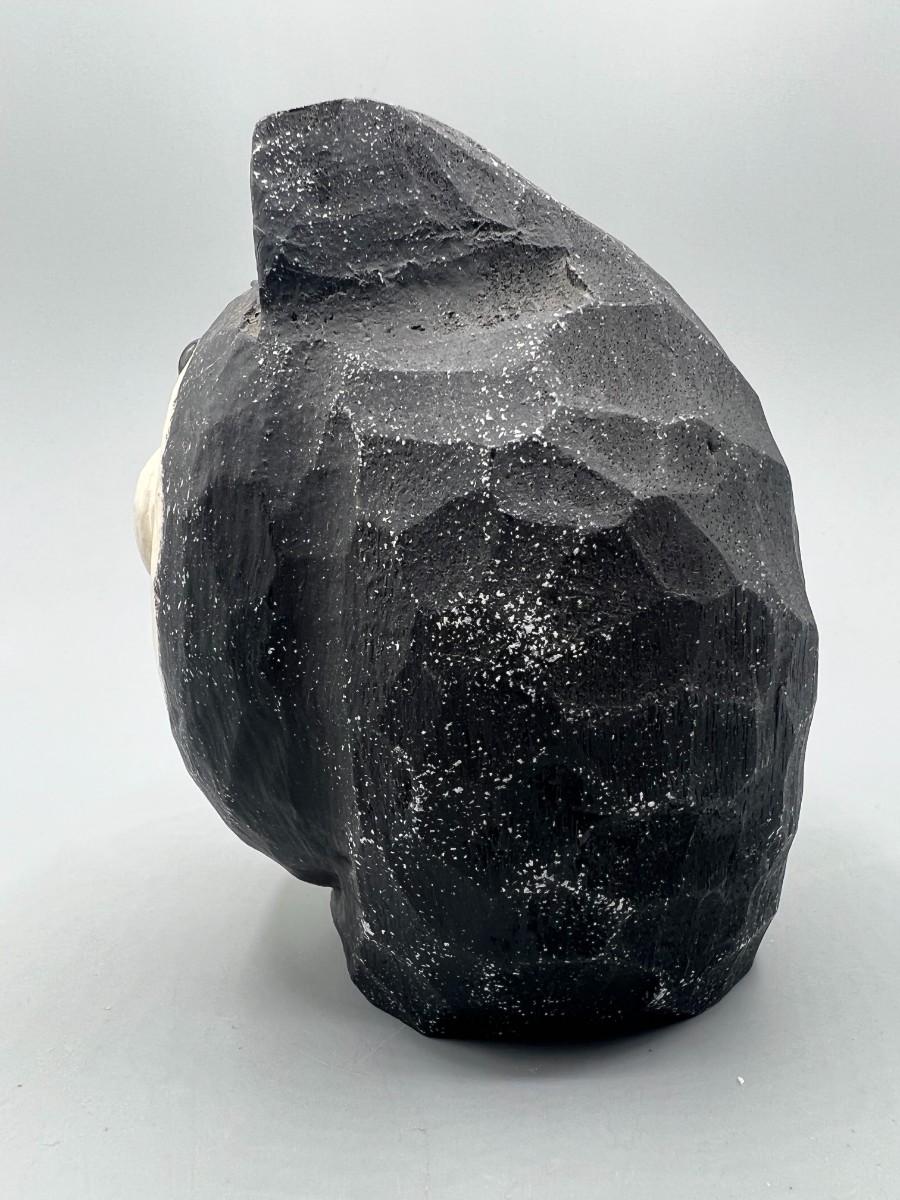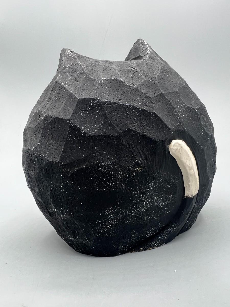Round Wooden Handmade Carved Signed Cute Black & White Cat Rustic Figurine Decor