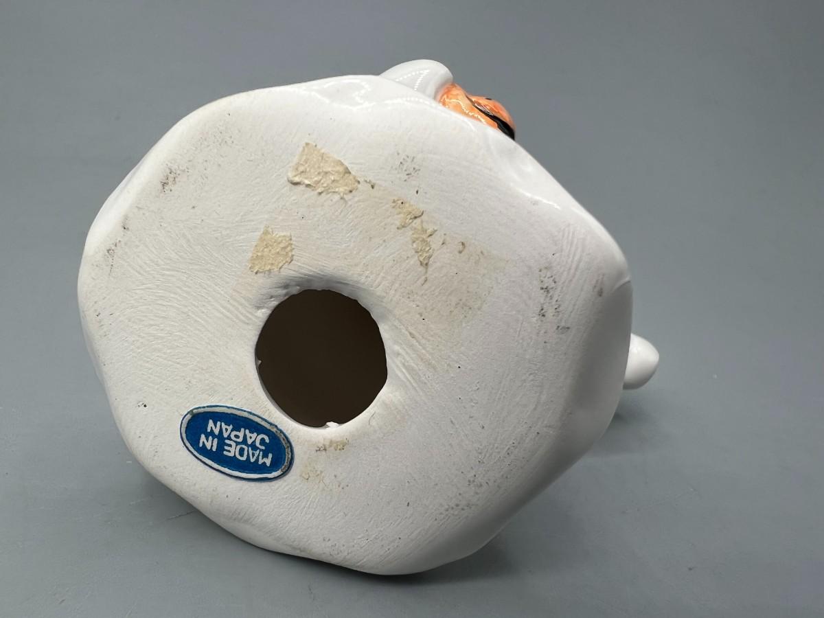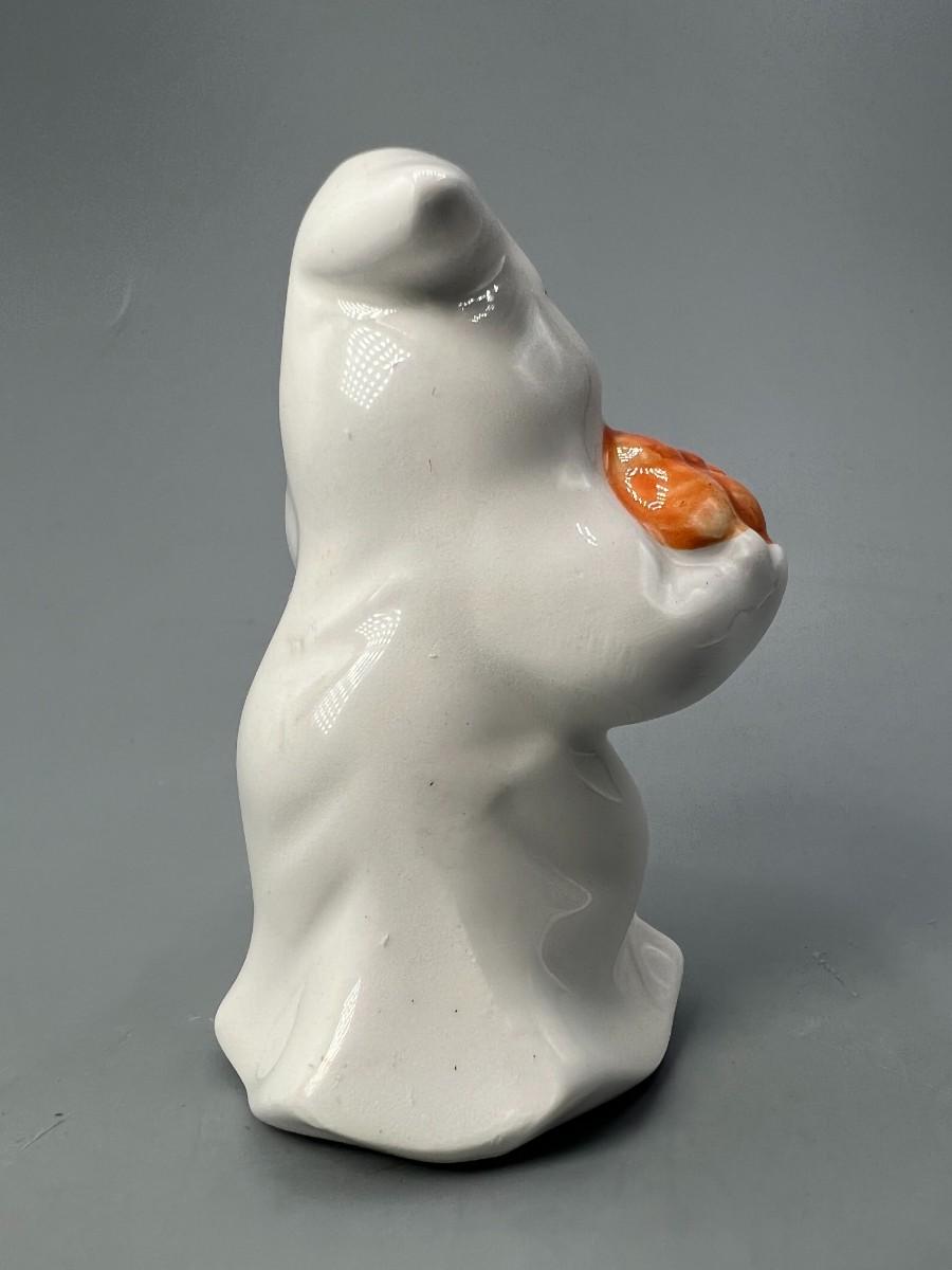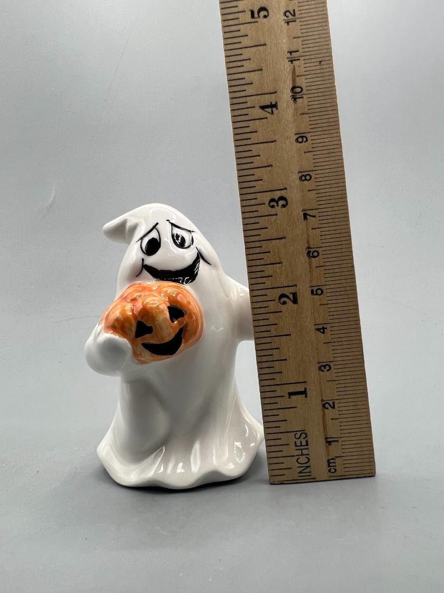 Ceramic Ghost with Jack-o-lantern Halloween Seasonal Figurine. Made in Japan. Good condition. About 3" size.