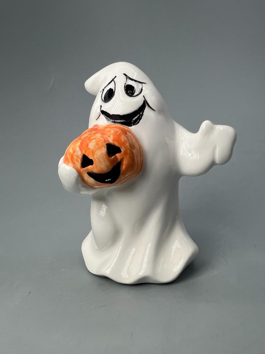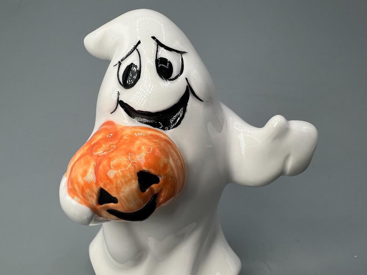 Ceramic Ghost with Jack-o-lantern Halloween Seasonal Figurine