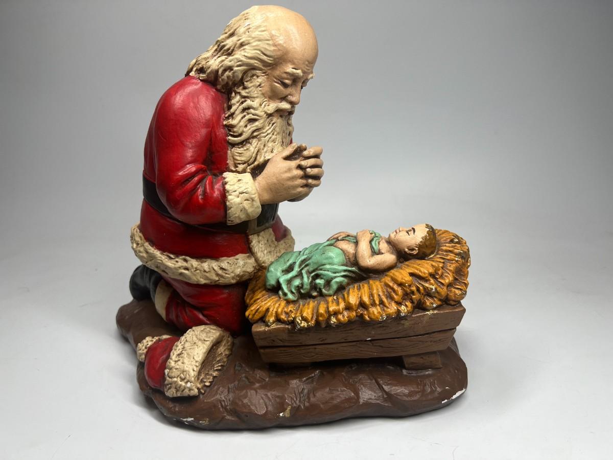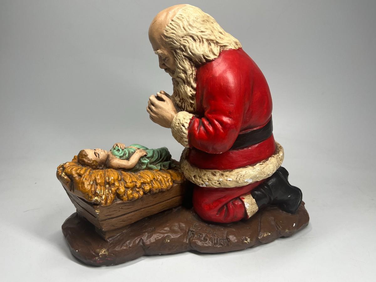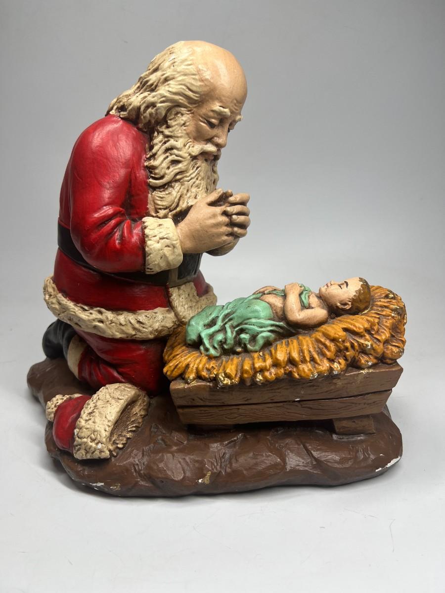Vintage Kneeling Santa Baby Jesus Chalkware Plaster R.P. Gauer Vargas Christmas Figurine