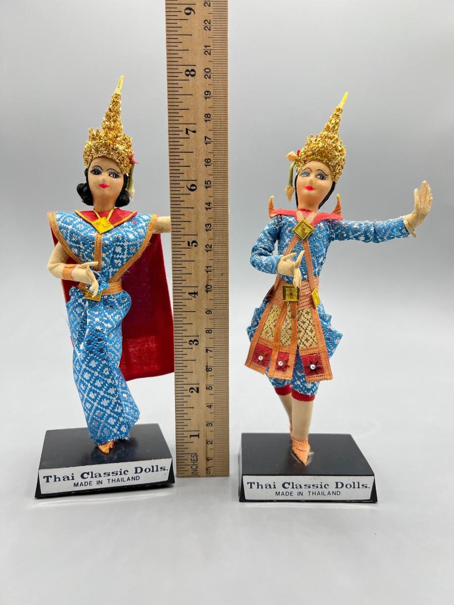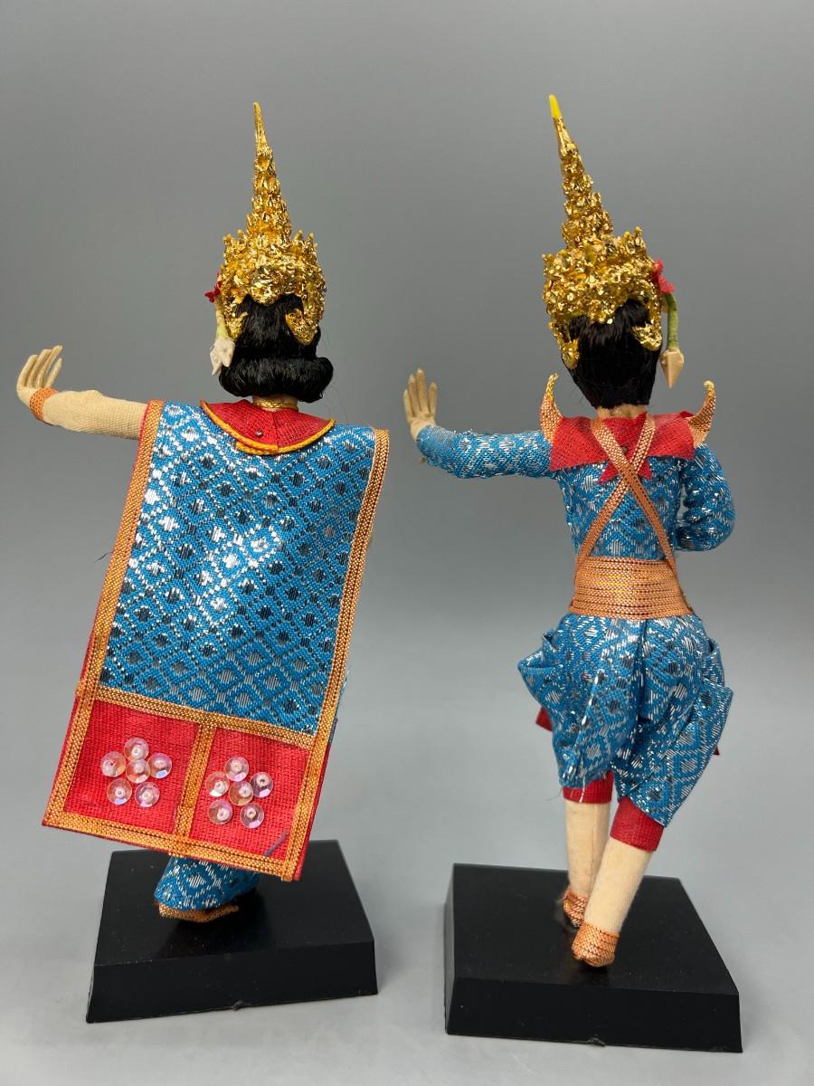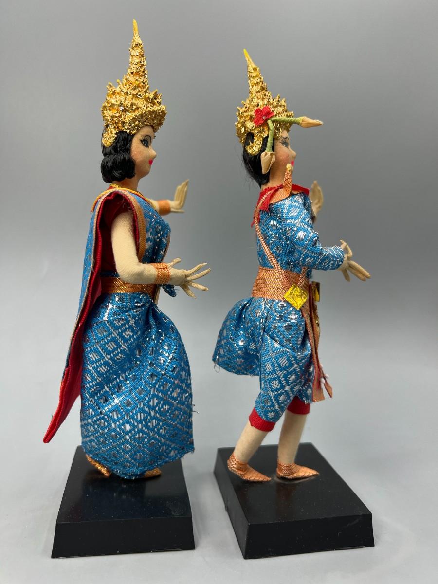 Pair of Vintage Handmade Thailand Classic Cloth Dancing Doll Foreign Souvenir Figurines