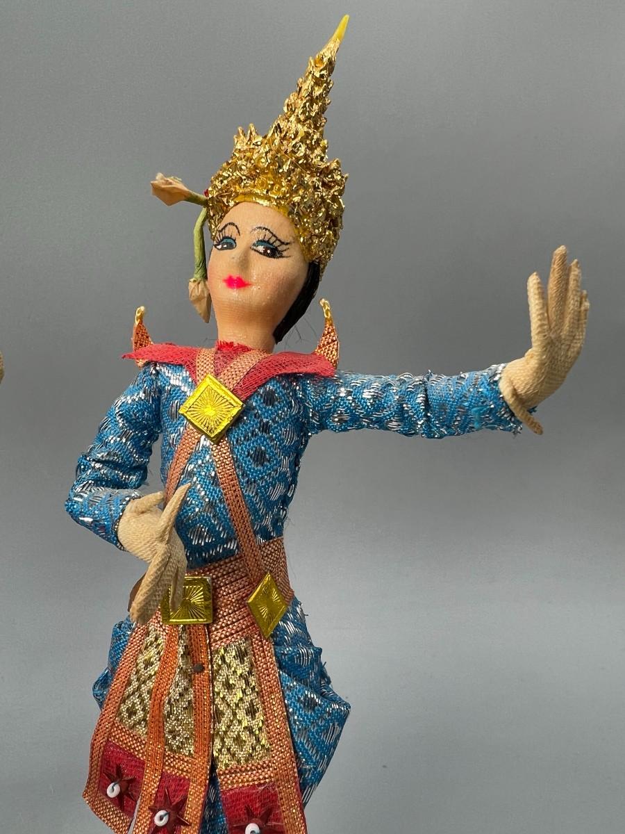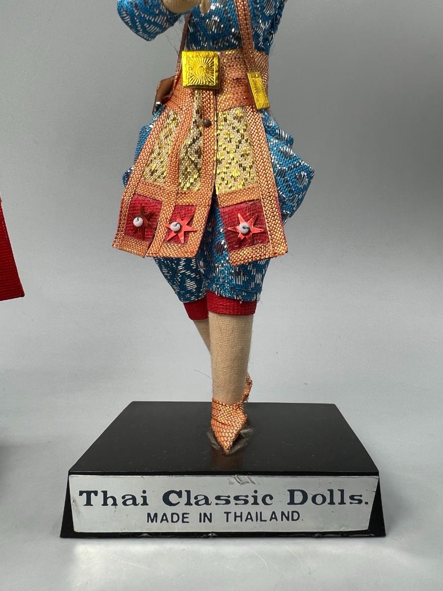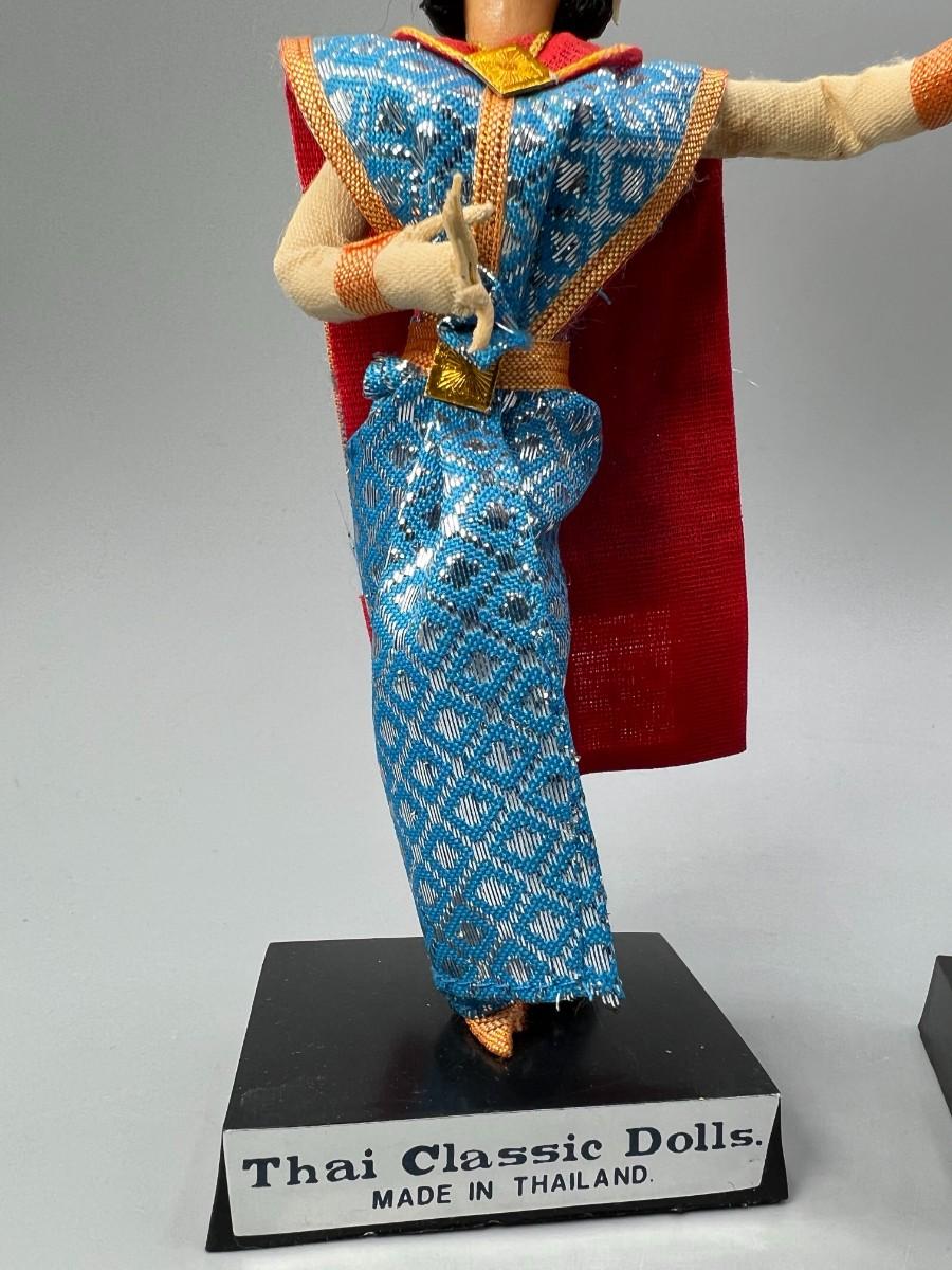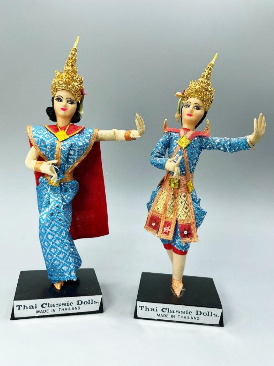 Pair of Vintage Handmade Thailand Classic Cloth Dancing Doll Foreign Souvenir Figurines