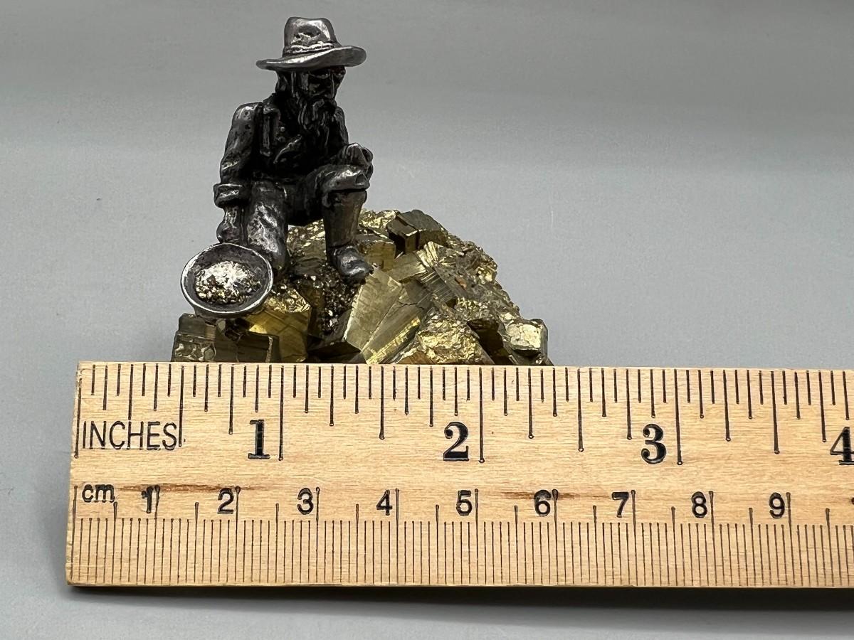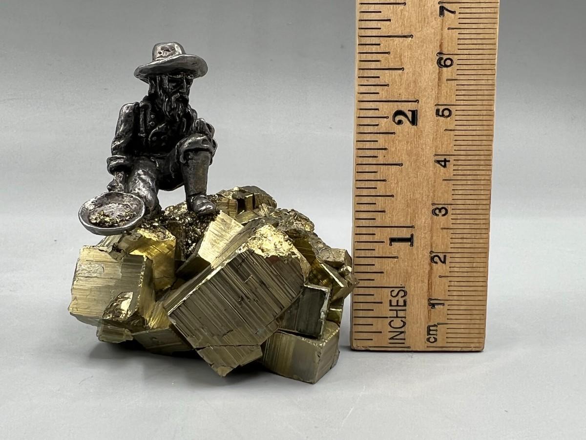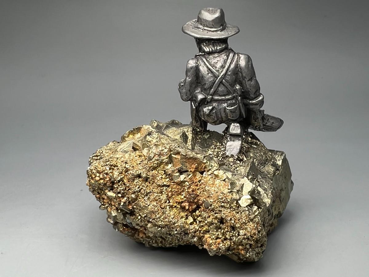 Small Retro Prospector Old West Miner Figurine on Pyrite Crystal Fools Gold Cluster