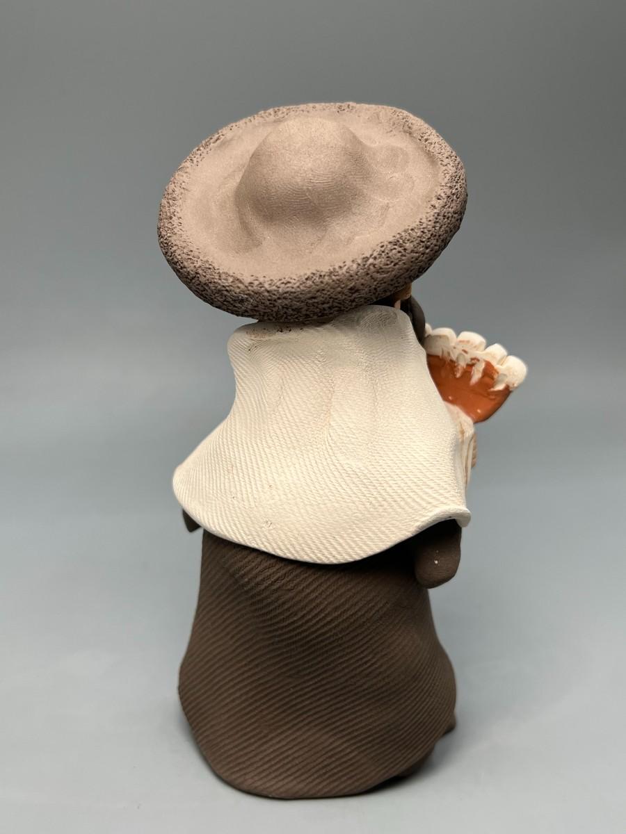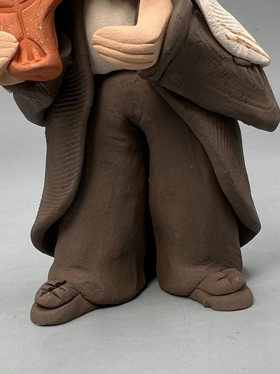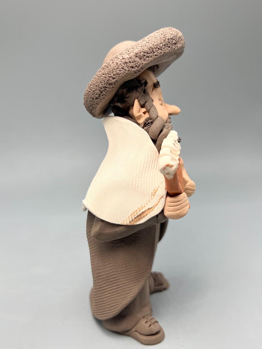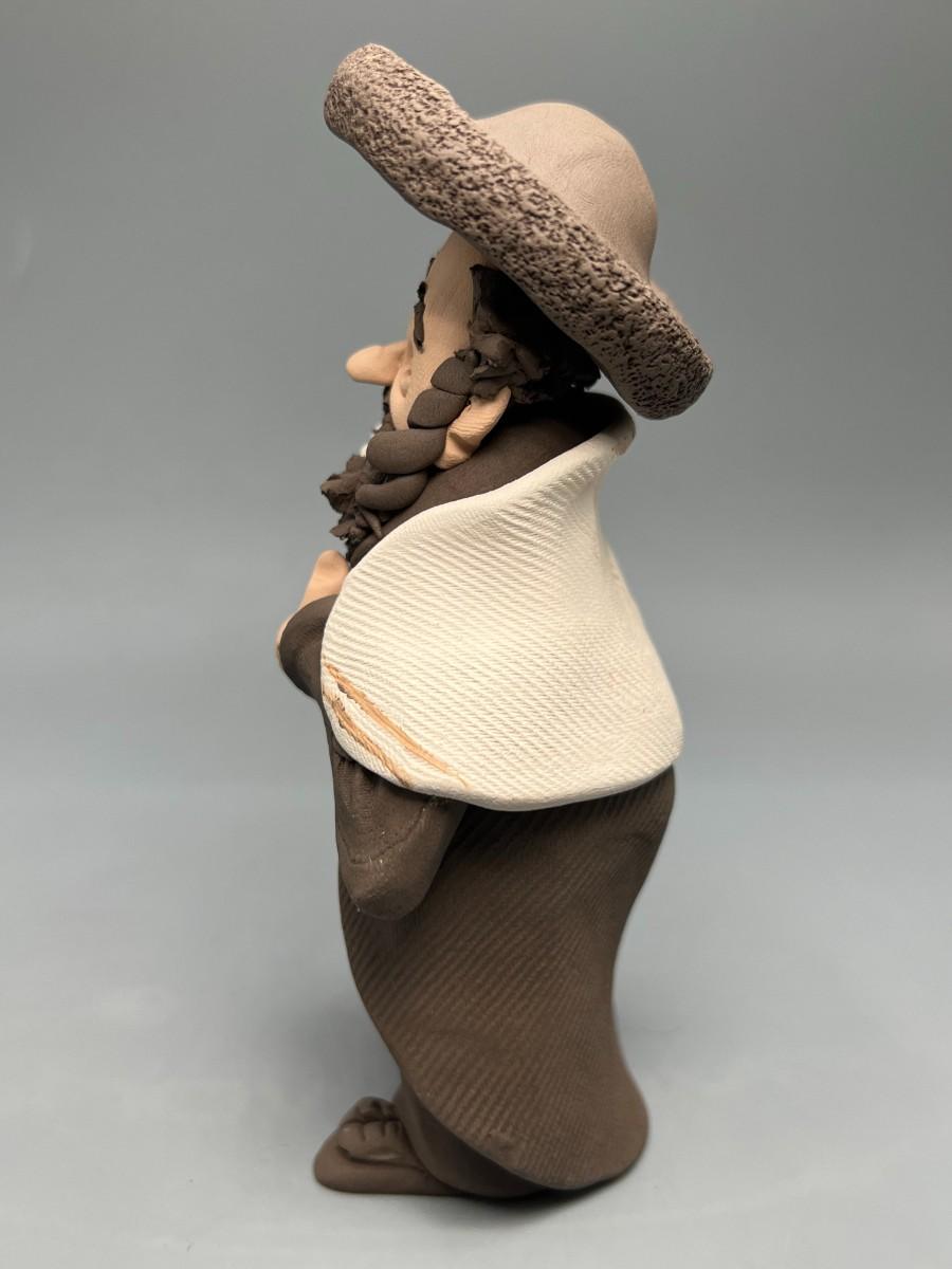 Vintage Clay Traditional Rabbi Holding Menorah with Artist Signature Religious Figurine