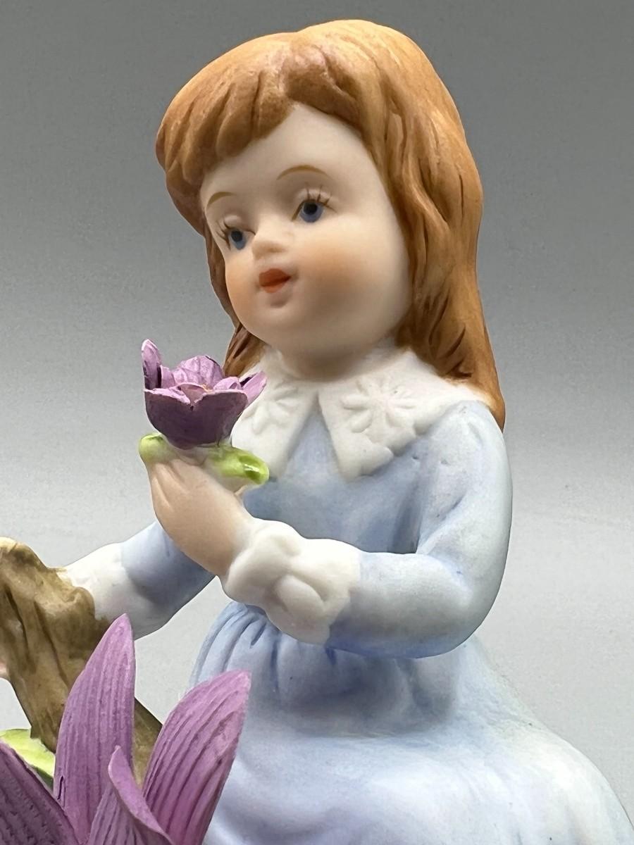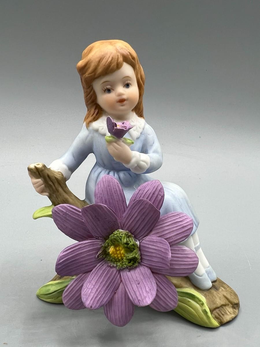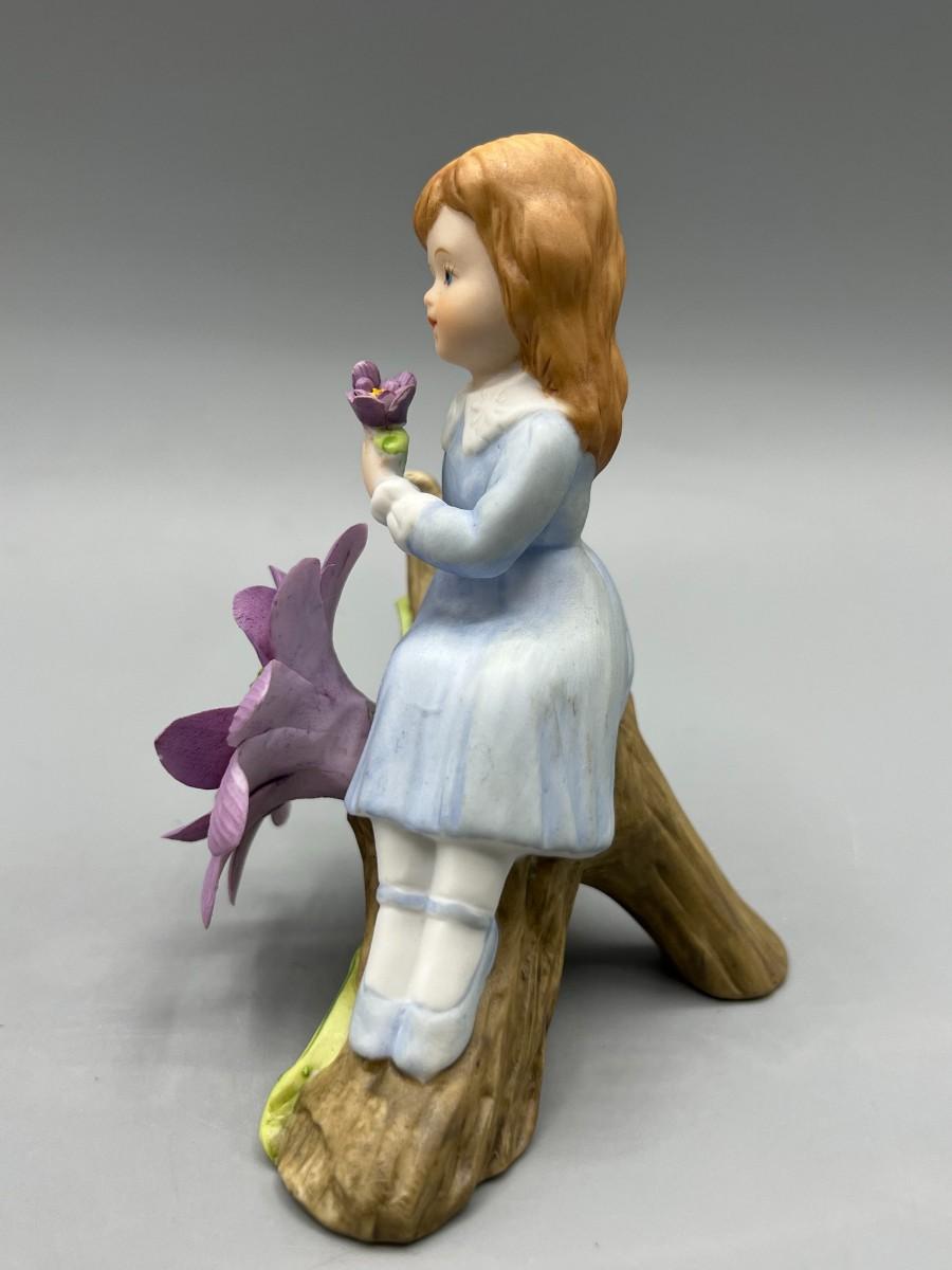 Vintage Ensco Purple Flower Girl Porcelain Figurine