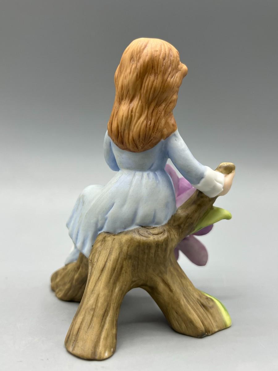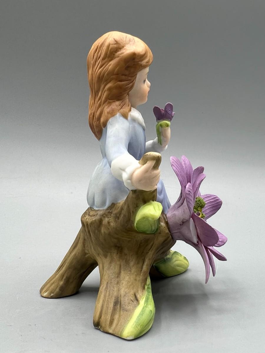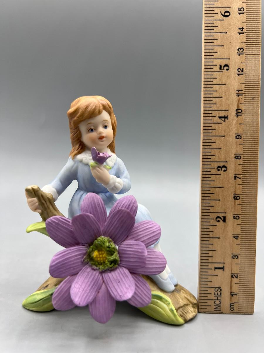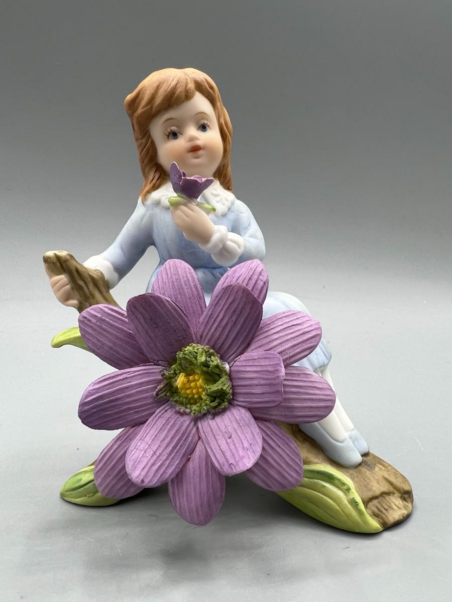 Vintage Ensco Purple Flower Girl Porcelain Figurine