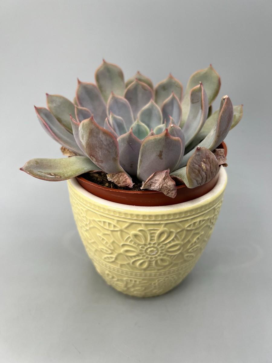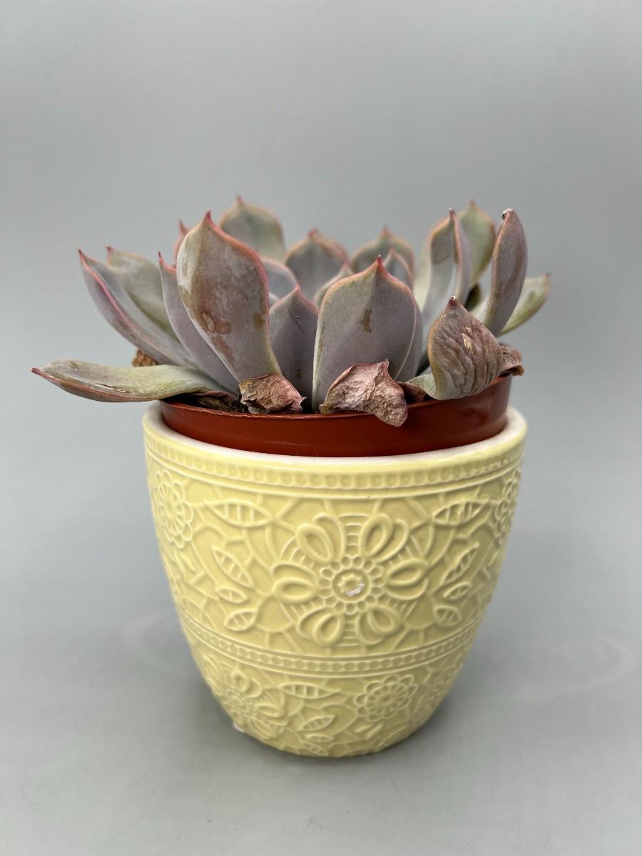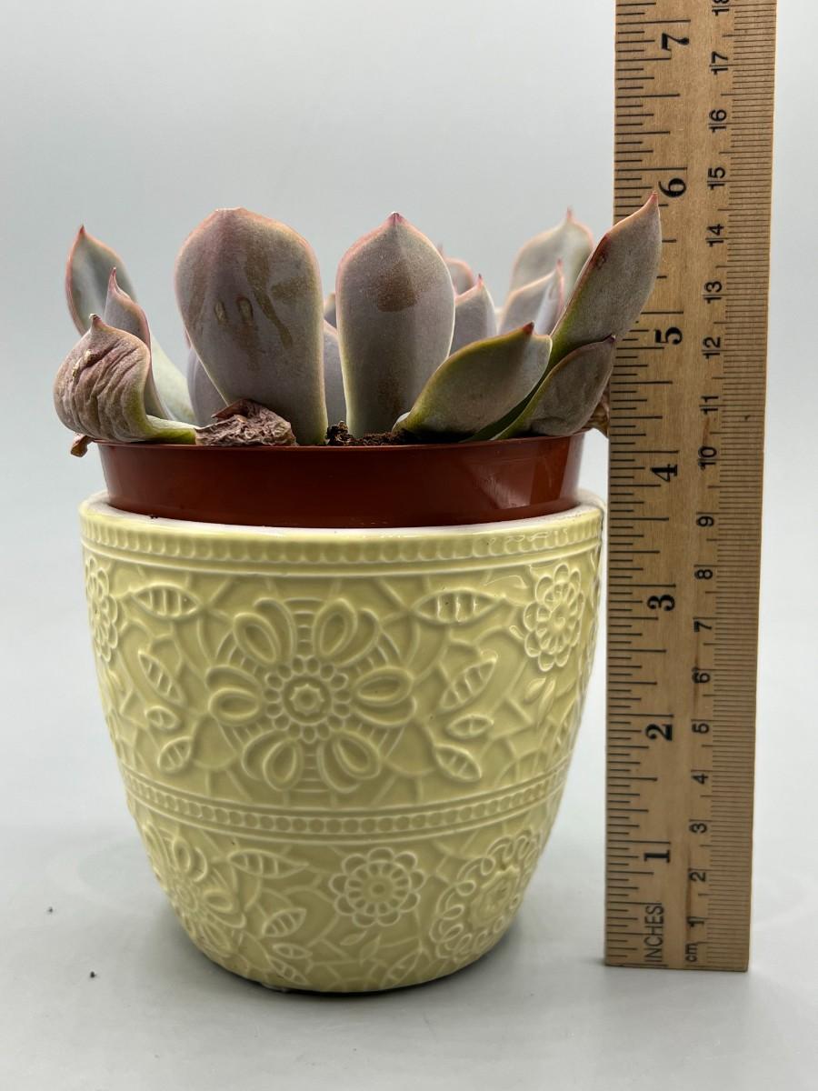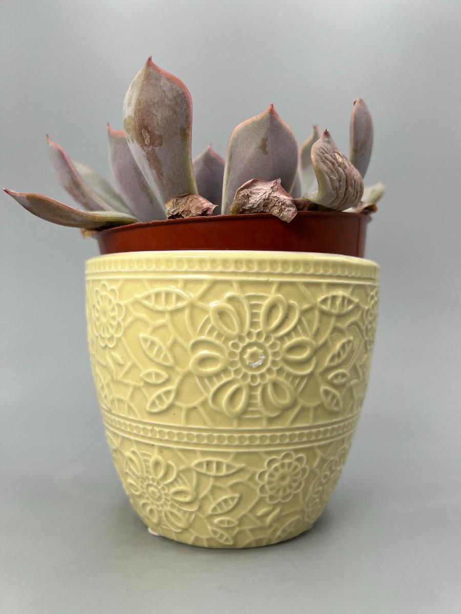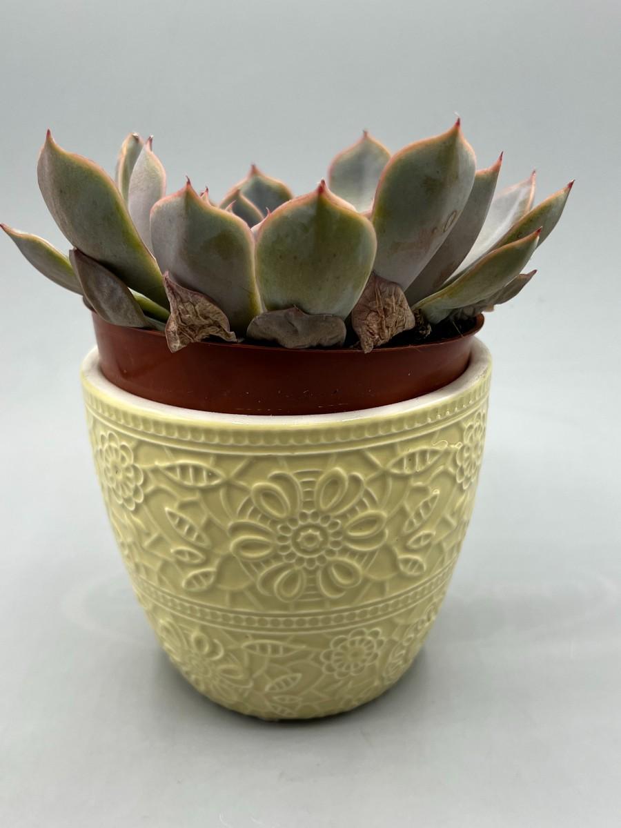 Yellow Ceramic Pottery Pot Ashland Spring with Real Live Succulent Plant