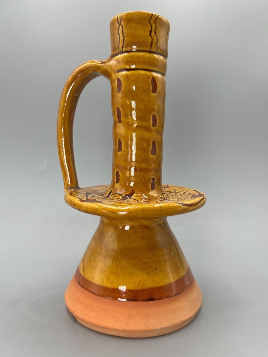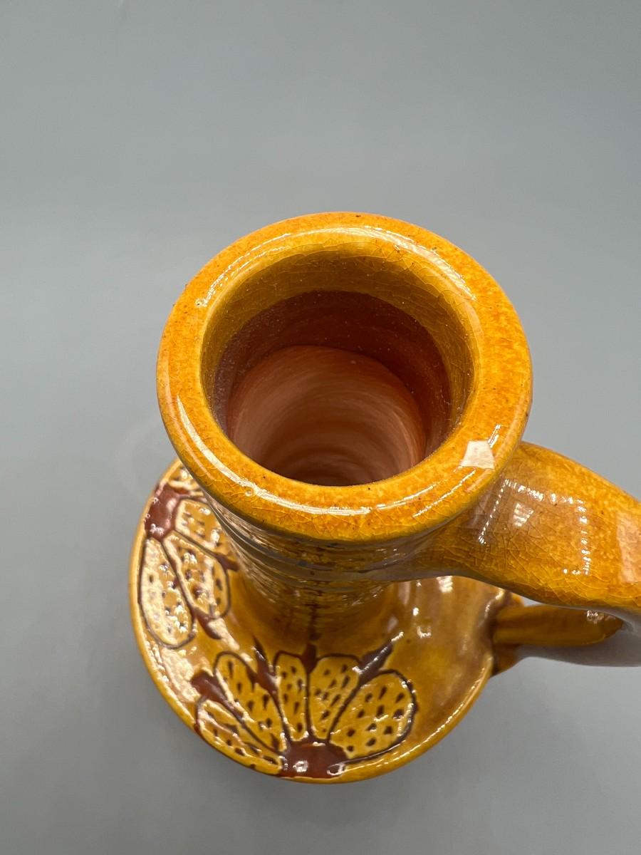 Retro Glazed Sunflower Handmade Pottery Candlestick Holder