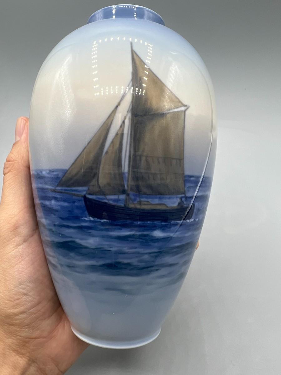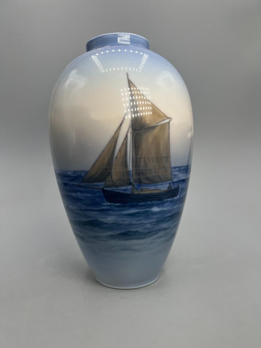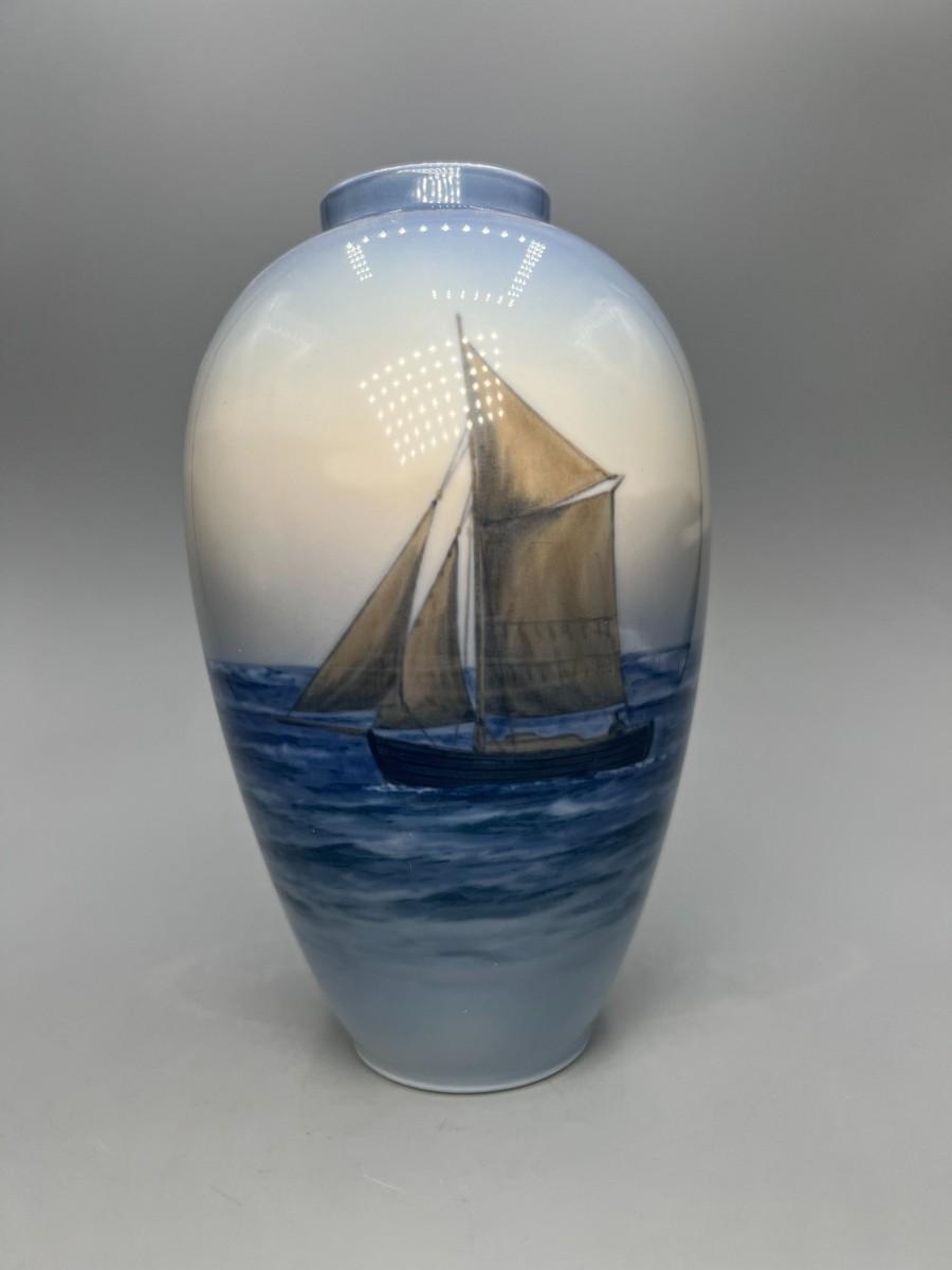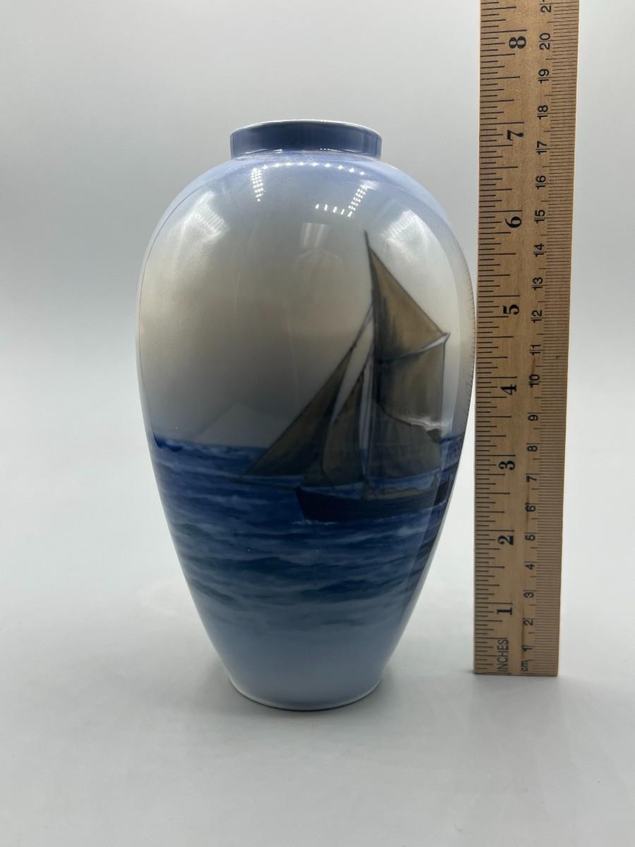 Royal Copenhagen Denmark Porcelain Nautical Sailboat Vase