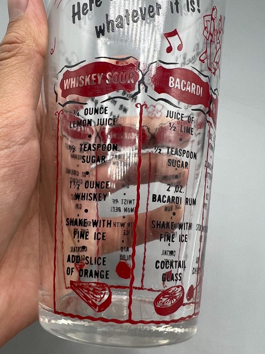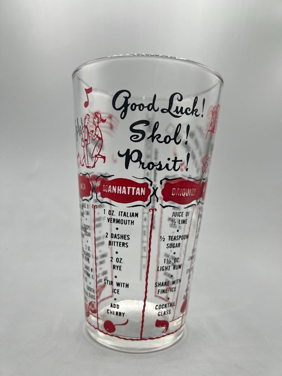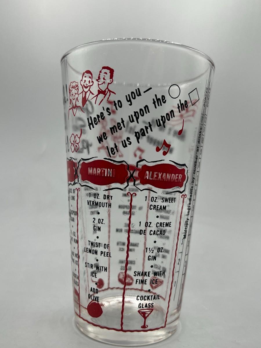 Vintage Novelty Barware Drink Recipe Glass