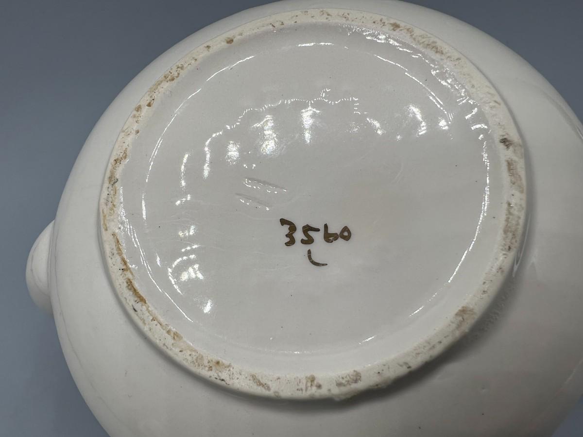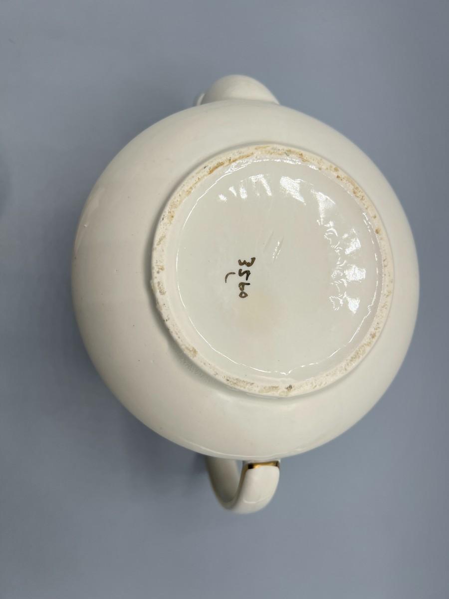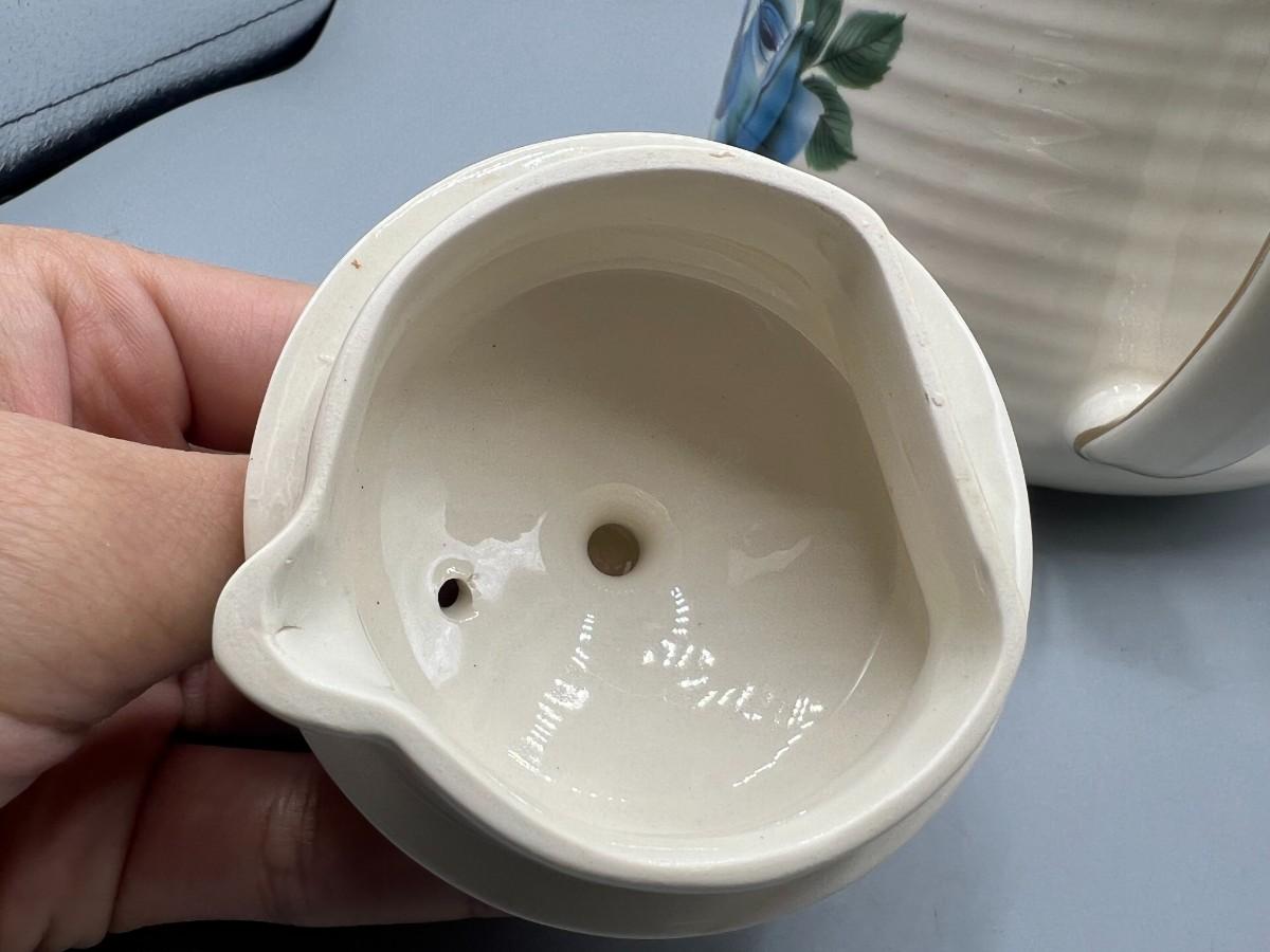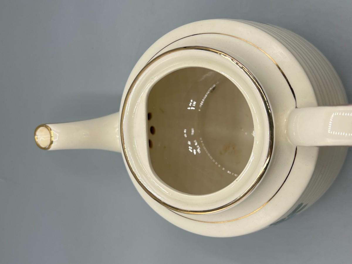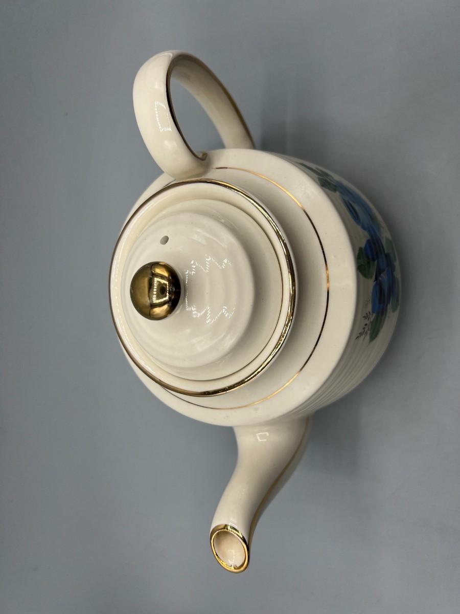 Vintage Ribbed Ceramic Blue Roses Tea Pot. In good vintage condition. Beautiful blue floral design. Stamped and numbers on the bottom.
