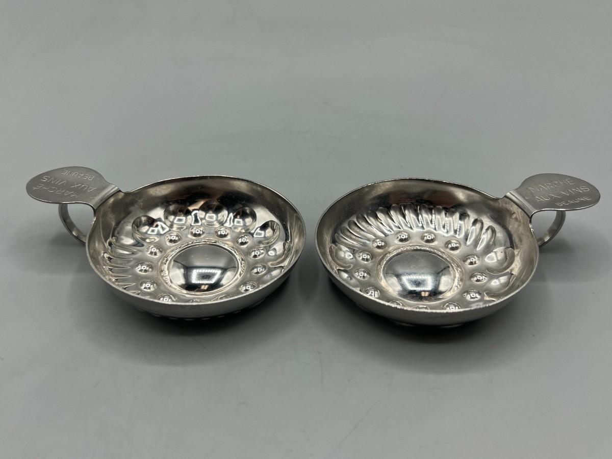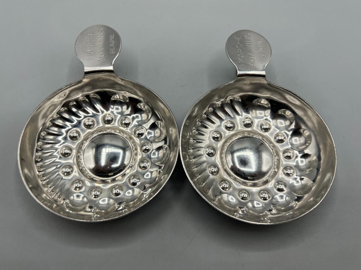 Pair of Vintage Silver Plated Wine Tasting Cups Marche Aux Vins Beaune