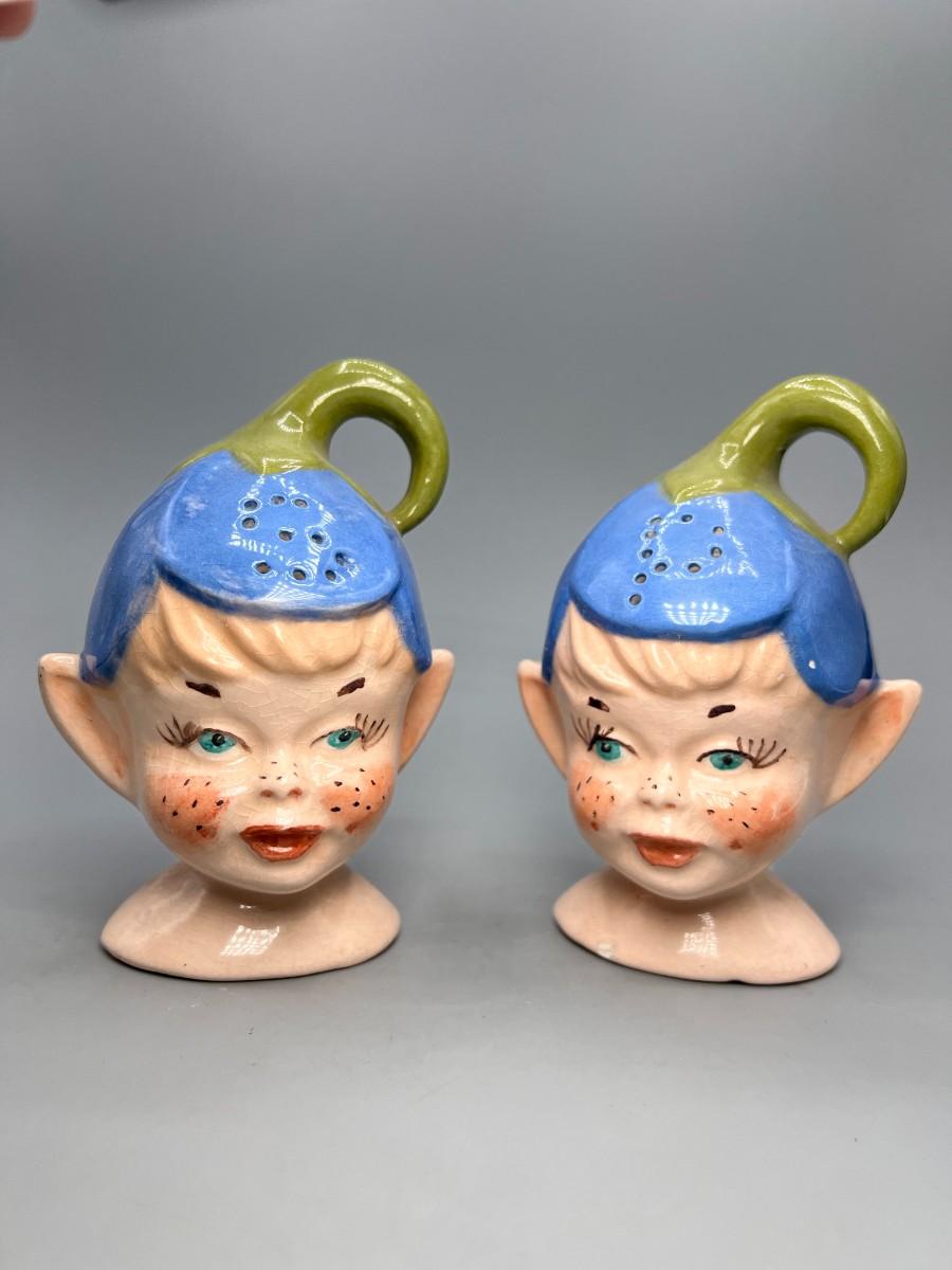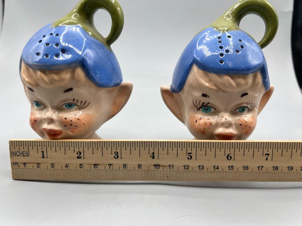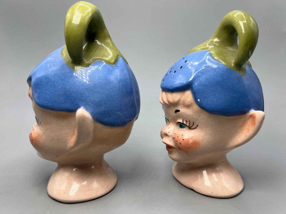 Vintage Pixie Wood Elf Signed Ceramic Salt & Pepper Shakers