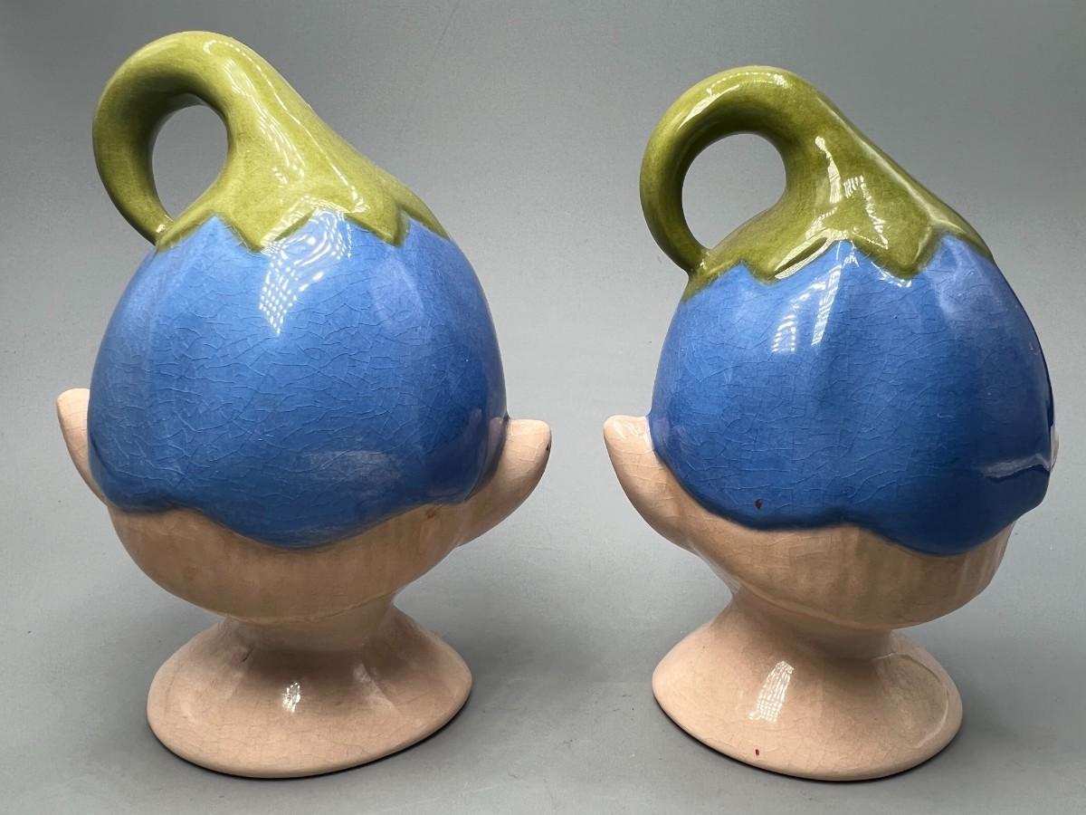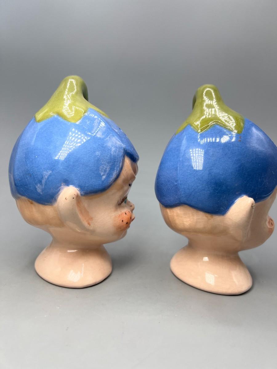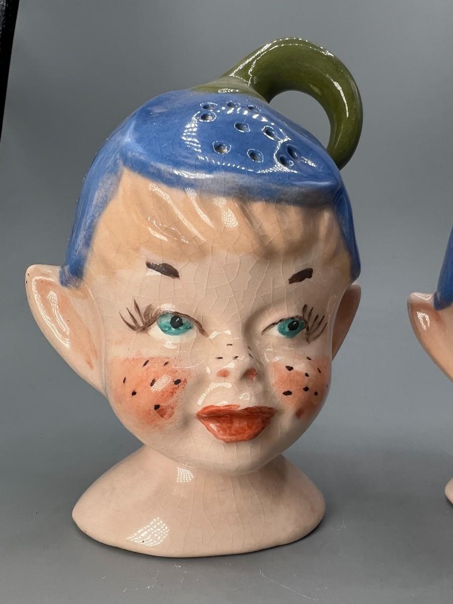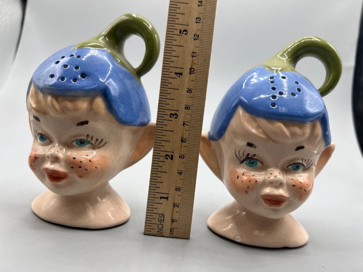 Vintage Pixie Wood Elf Signed Ceramic Salt & Pepper Shakers