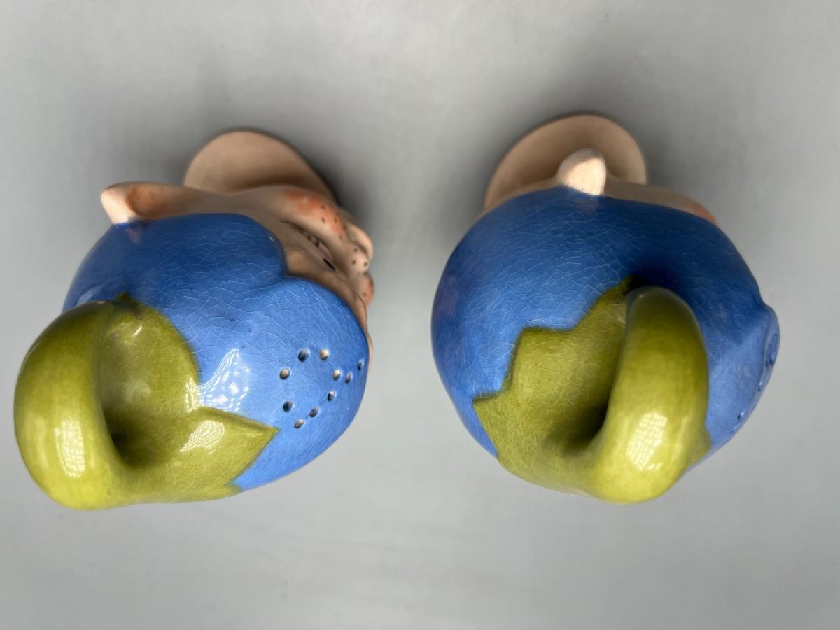 There is a chip on the base of the pepper shaker, but there is no other significant damage and is in overall good collectible or displayable condition. Has a bit or crazing, check pictures for more details.
