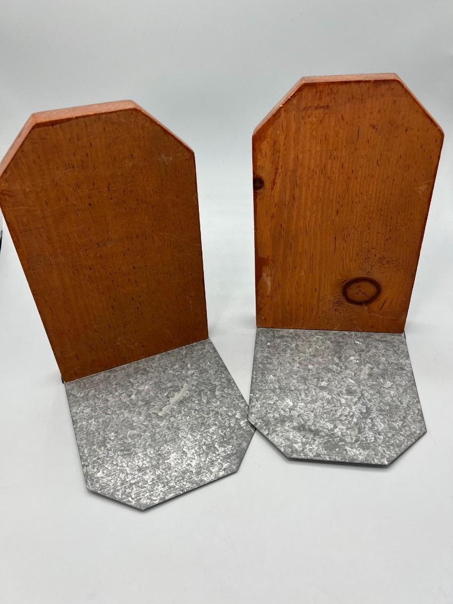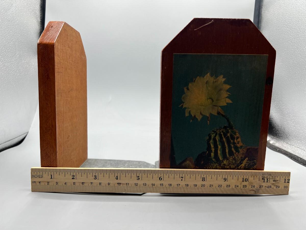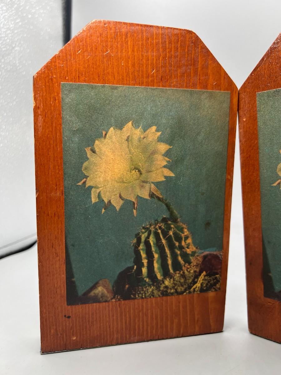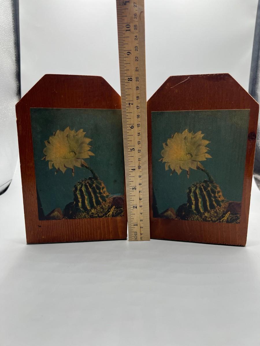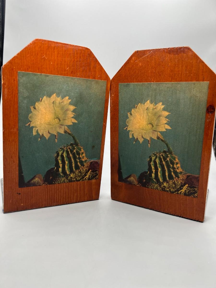 Pair of Vintage Desert Cactus Succulent Wooden & Metal Bookends