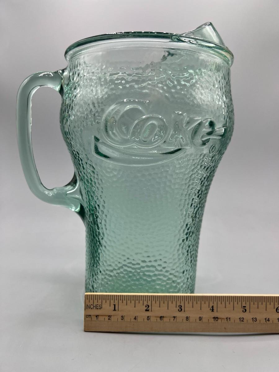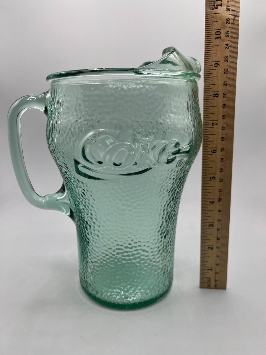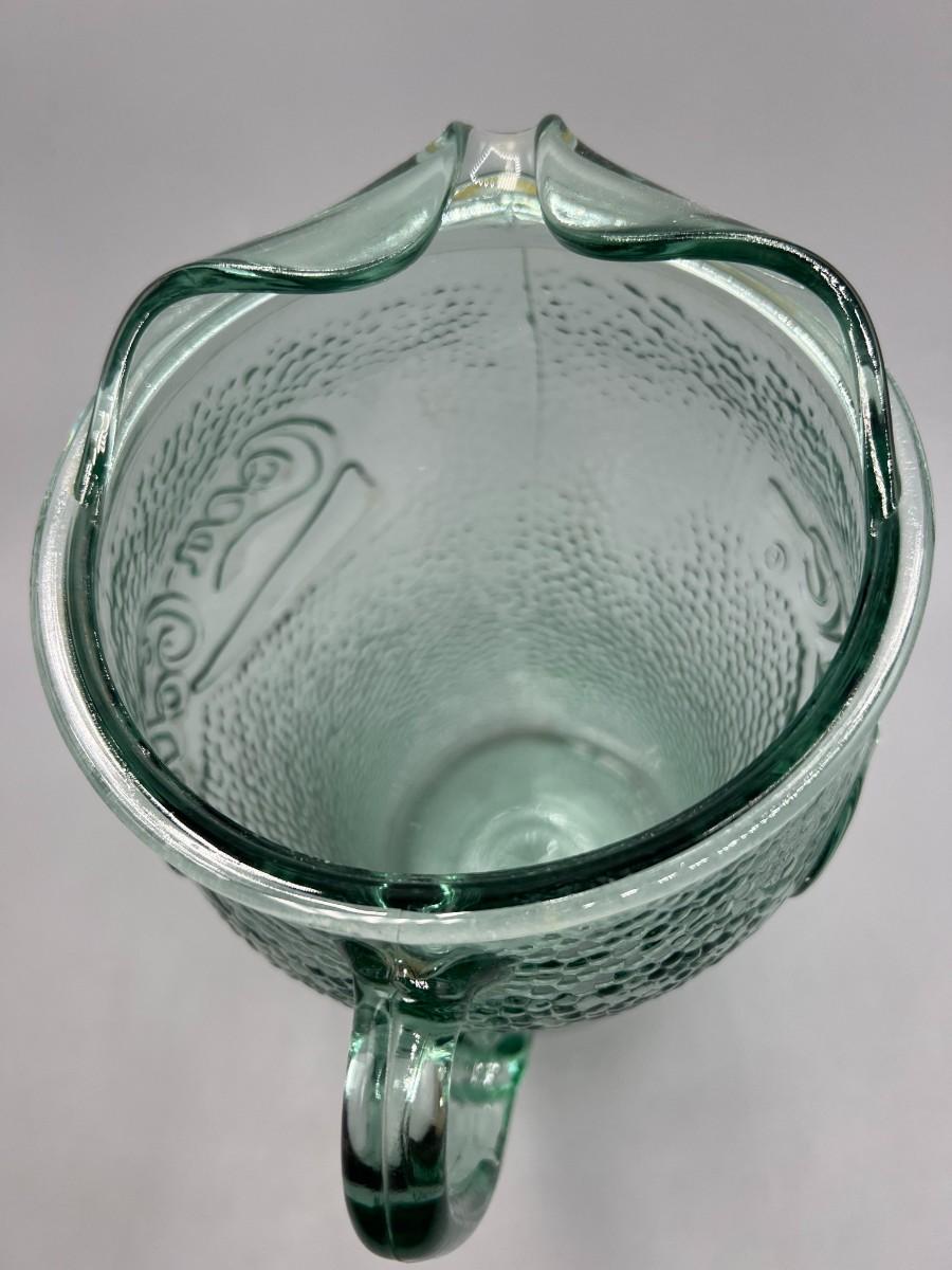 Retro Heavy Green Pebbled Glass Coca-Cola Pitcher with Ice Lip