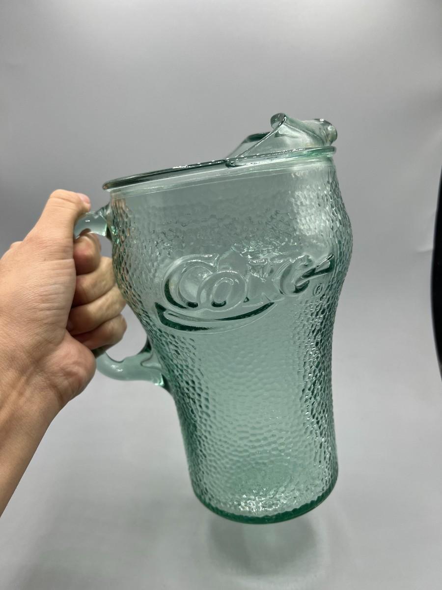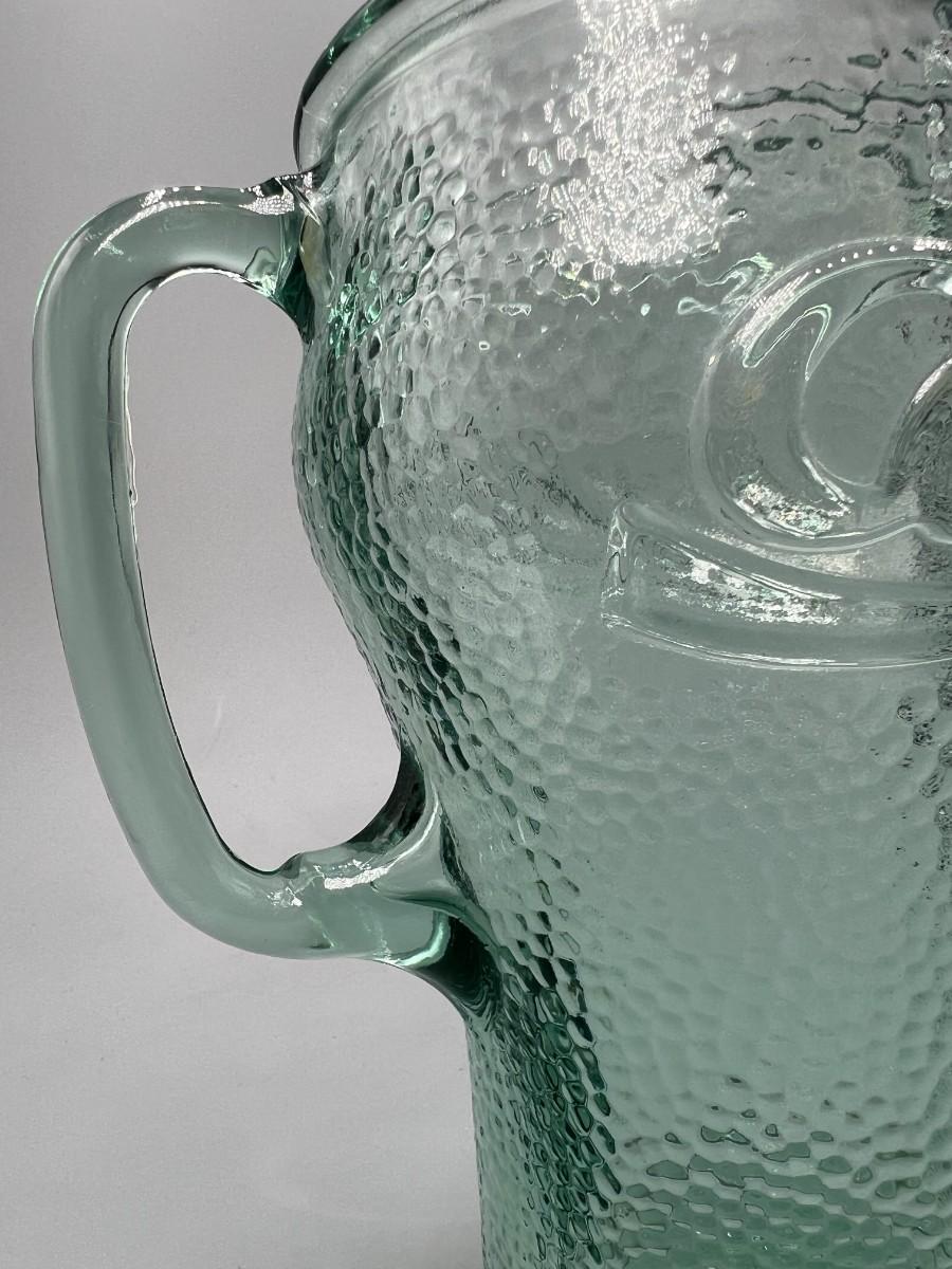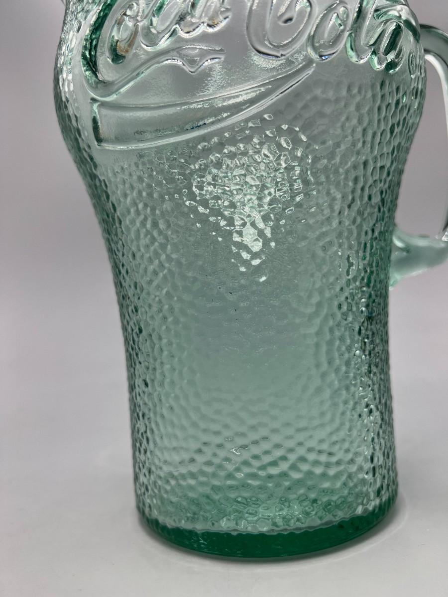 Retro Heavy Green Pebbled Glass Coca-Cola Pitcher with Ice Lip
