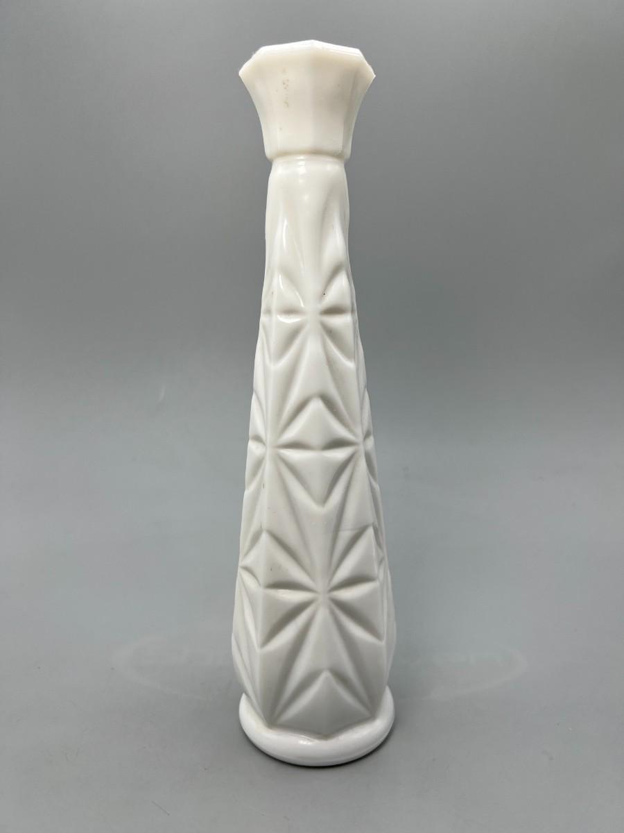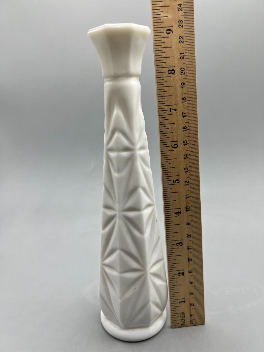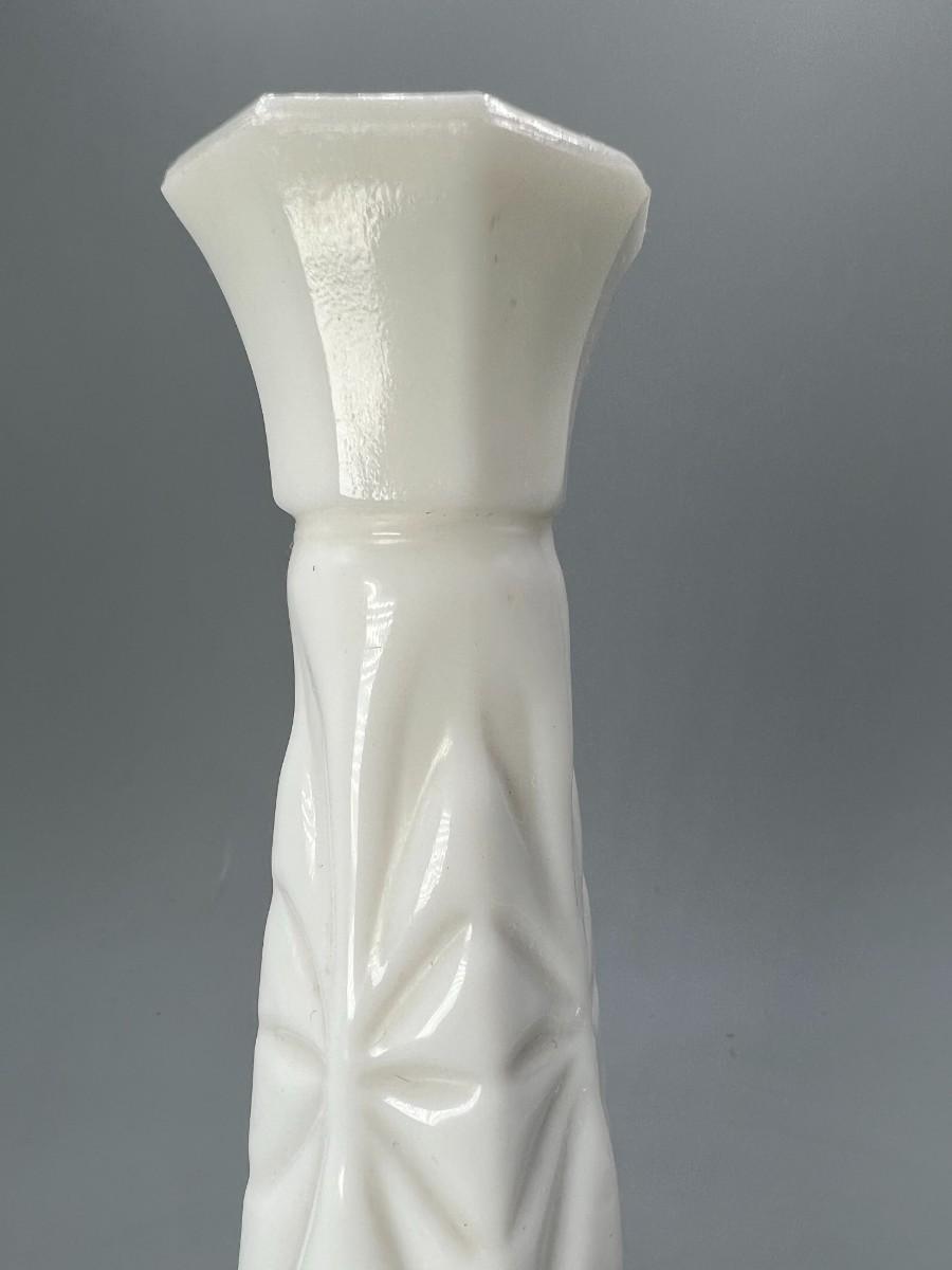 Vintage Milk Glass Etched Design Mid Century Modern Flower Bud Vase
