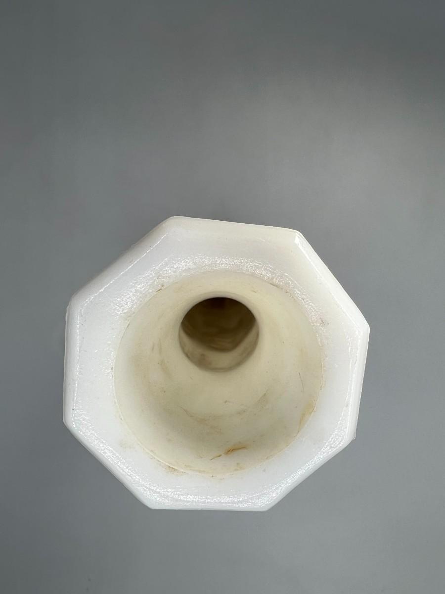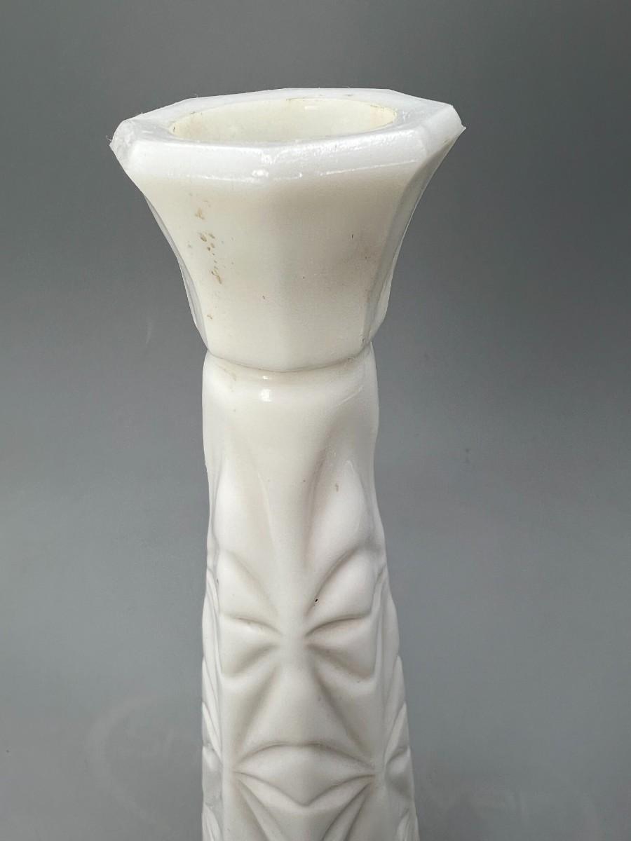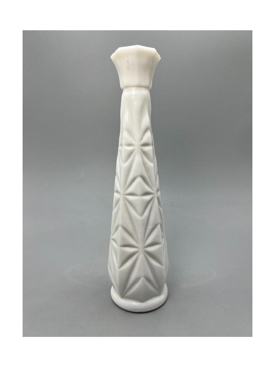 Vintage Milk Glass Etched Design Mid Century Modern Flower Bud Vase